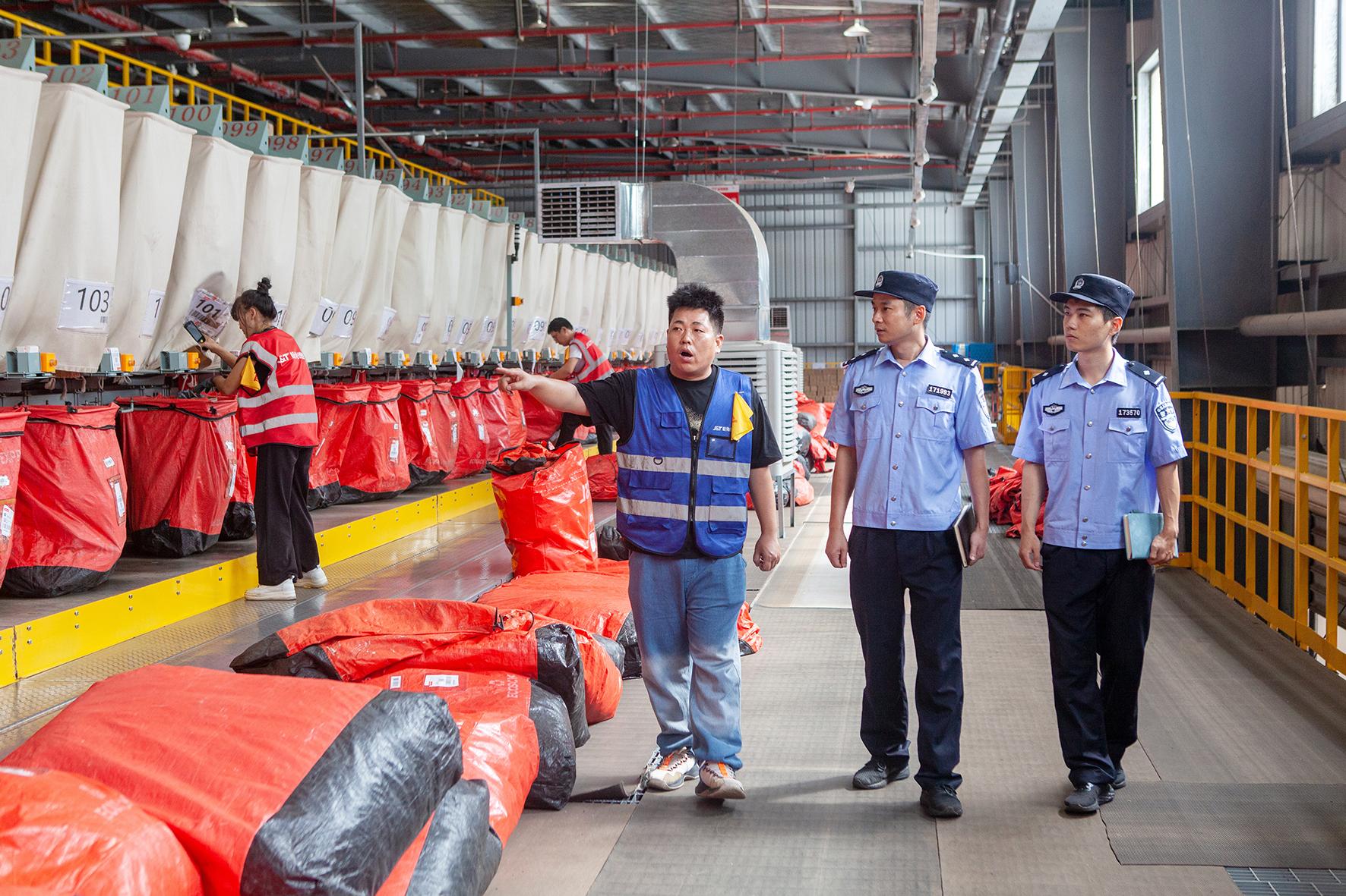 圖為10月14日,民警來(lái)到轄區(qū)內(nèi)一家大型物流企業(yè)開(kāi)展走訪排查。