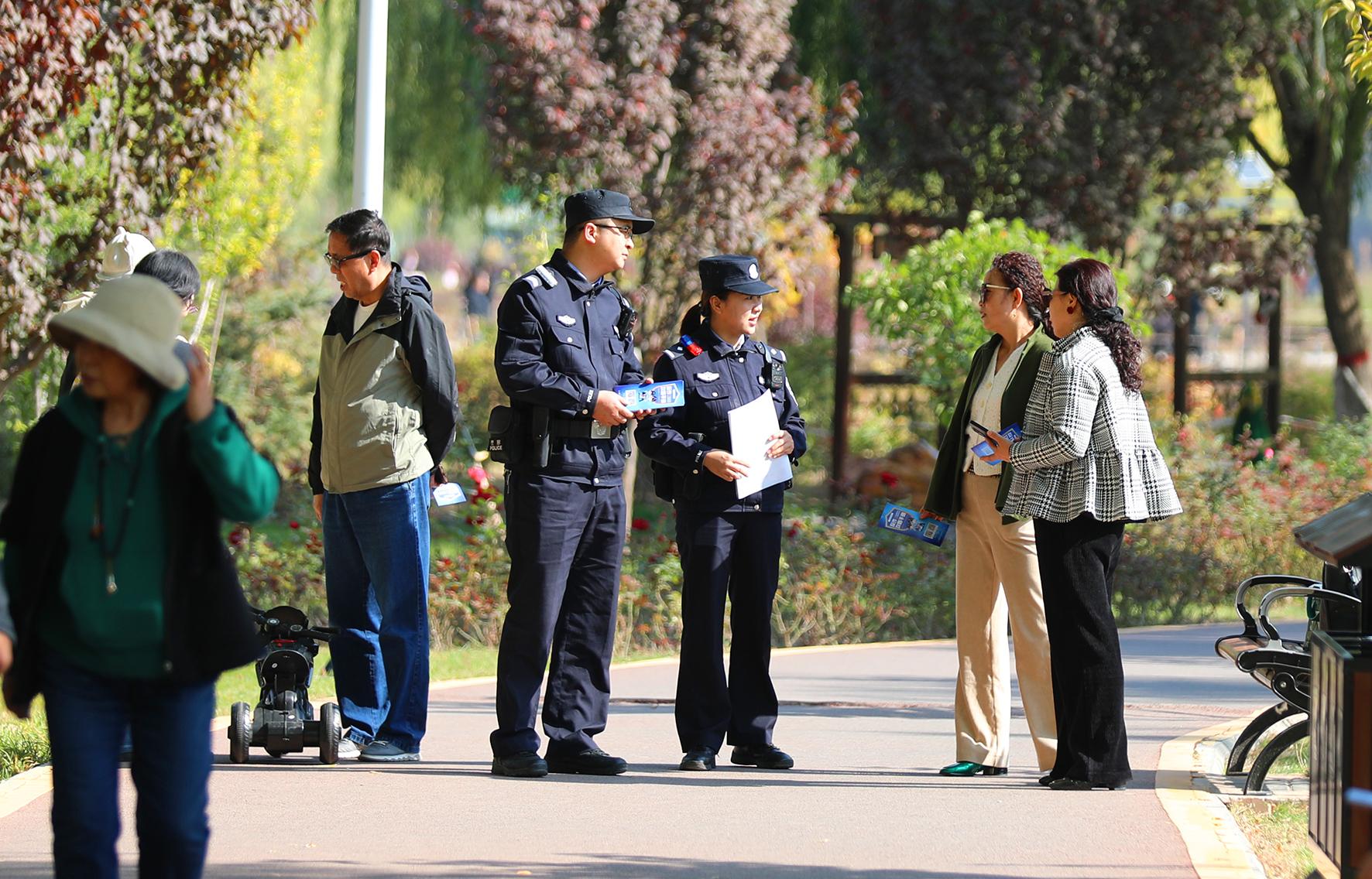 10月24日,甘肅省蘭州市公安局城關分局鹽場路派出所組織民輔警走進轄區(qū)公園開展防電詐宣傳,增強居民安全防范意識和能力。