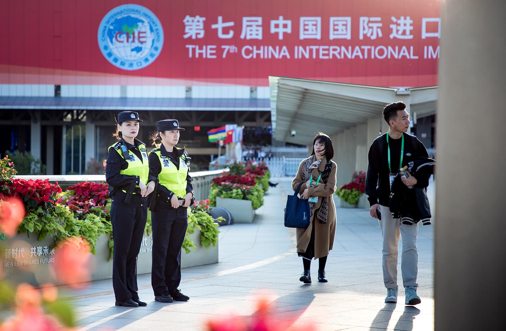 11月5日,第七屆進(jìn)博會(huì)在上海國(guó)家會(huì)展中心拉開帷幕。上海市公安局閔行分局啟動(dòng)高等級(jí)勤務(wù),全力保障“四葉草”場(chǎng)館周邊道路有序、水域安全。