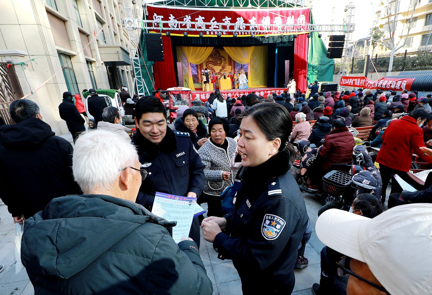 12月17日,山東省曹縣公安局曹城派出所民警利用送戲進(jìn)社區(qū)的有利時(shí)機(jī),開(kāi)展反詐騙宣傳活動(dòng)。