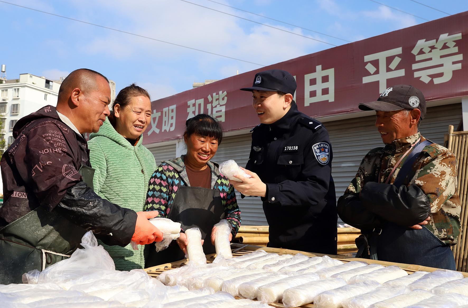 12月24日,浙江省臺州市路橋區(qū)桐嶼派出所社區(qū)民警在社區(qū)年糕加工點走訪,傾聽群眾的心聲,宣傳消防安全等知識。