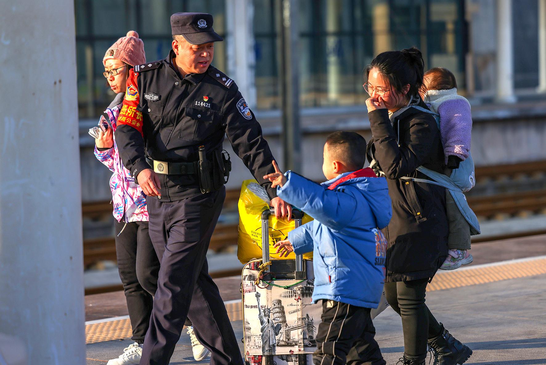 2月4日,春節(jié)假期最后一天。石家莊站派出所優(yōu)化警力配置,增加巡邏頻次,傾力服務(wù)旅客出行。