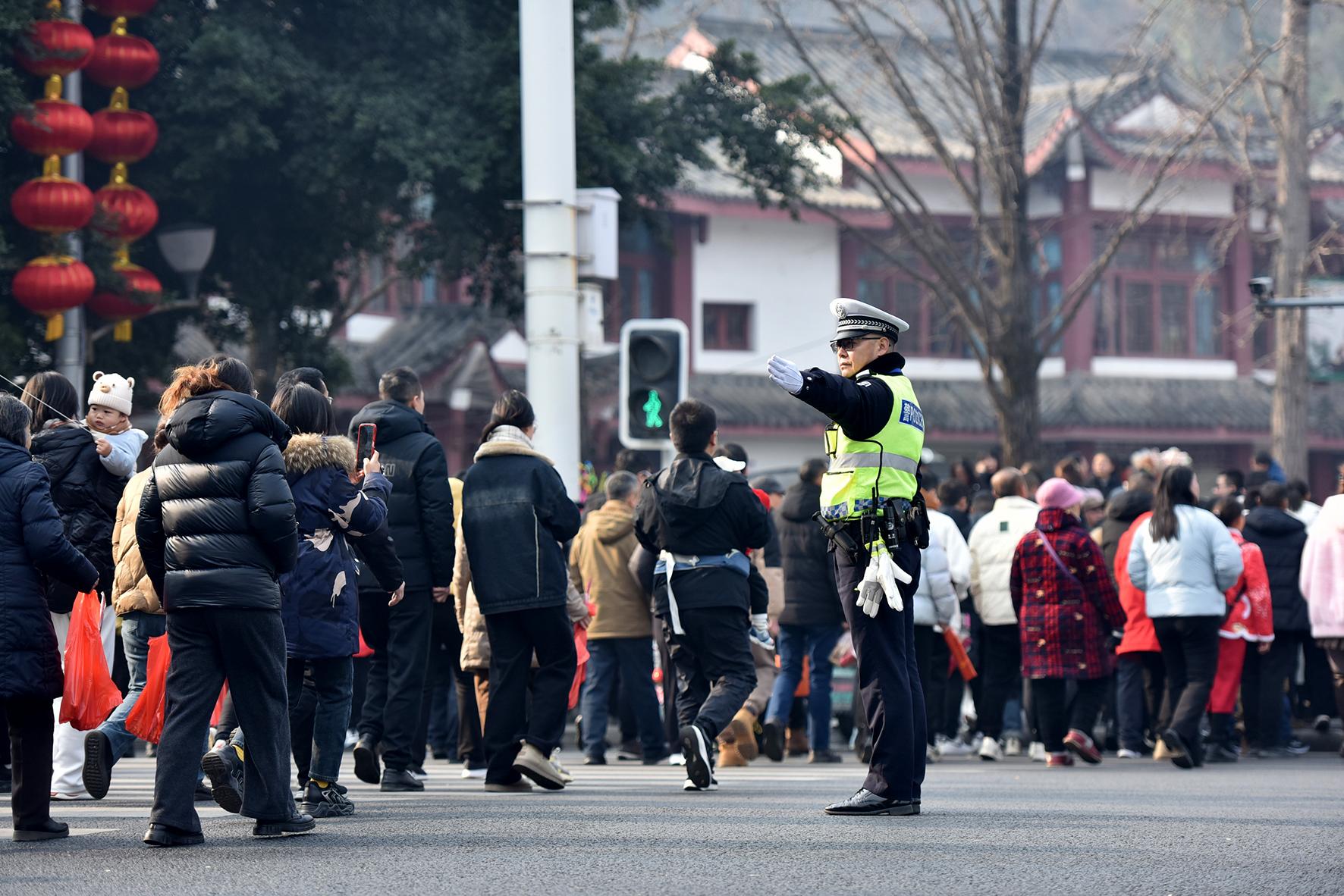1月29日,大年初一。四川省綿陽(yáng)市公安局交警支隊(duì)直屬一大隊(duì)加強(qiáng)了轄區(qū)民俗活動(dòng)、商業(yè)區(qū)域周邊交通秩序管控力度,確保道路安全暢通。