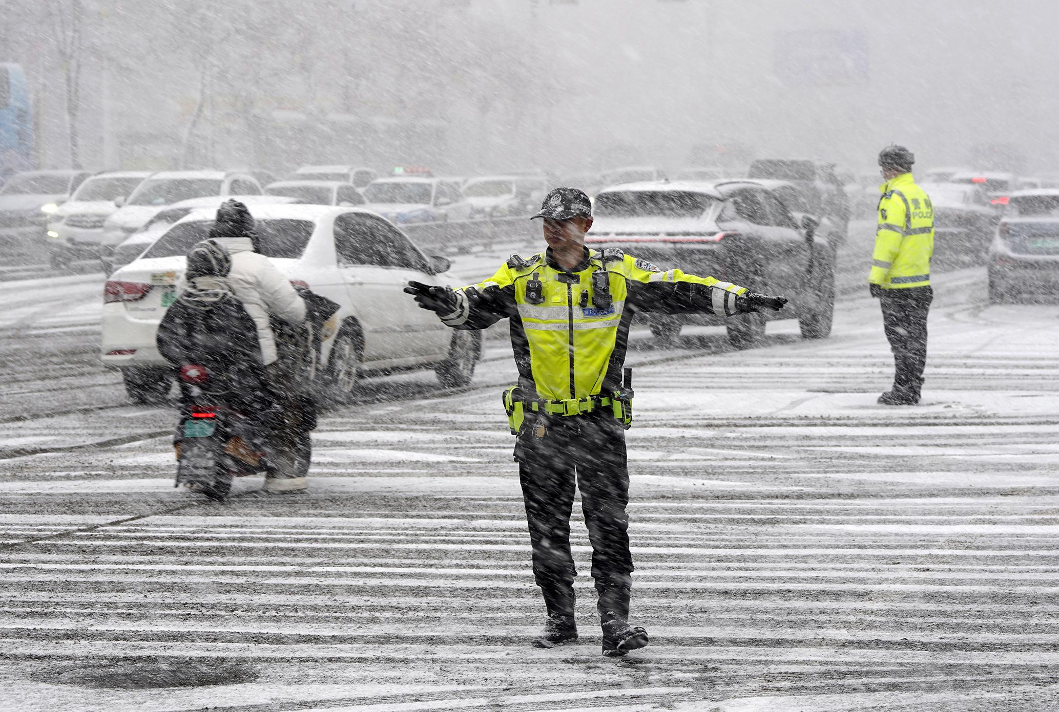 2月3日,山東省煙臺(tái)市市區(qū)突降大雪。煙臺(tái)市公安局交警支隊(duì)立即啟動(dòng)應(yīng)急預(yù)案,加強(qiáng)對(duì)景區(qū)、廟會(huì)、商場(chǎng)等周邊的交通疏導(dǎo),確保節(jié)日期間道路交通通暢。