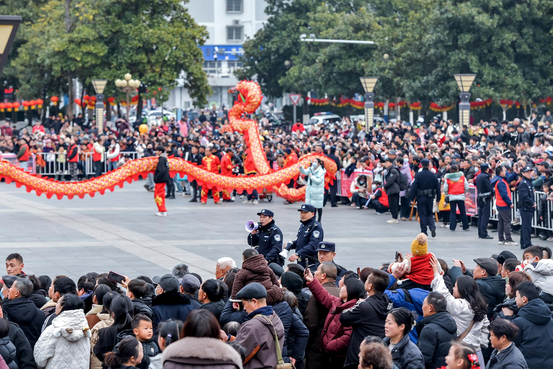 2月11日,安徽省涇縣舉辦“2025鬧元宵·舞龍巡游”活動(dòng)。為保障活動(dòng)安全有序進(jìn)行,涇縣公安局提前謀劃、統(tǒng)籌部署,抽調(diào)200余名警力維護(hù)活動(dòng)秩序。