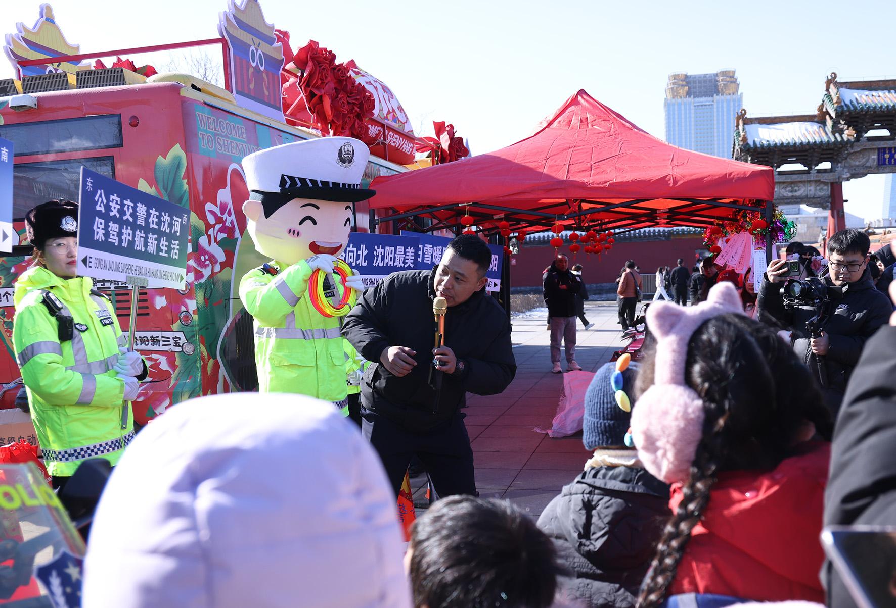2月12日,遼寧省沈陽(yáng)市公安局交通警察局沈河大隊(duì)交警在沈陽(yáng)故宮門前開(kāi)展“猜燈謎 送安全”活動(dòng)。