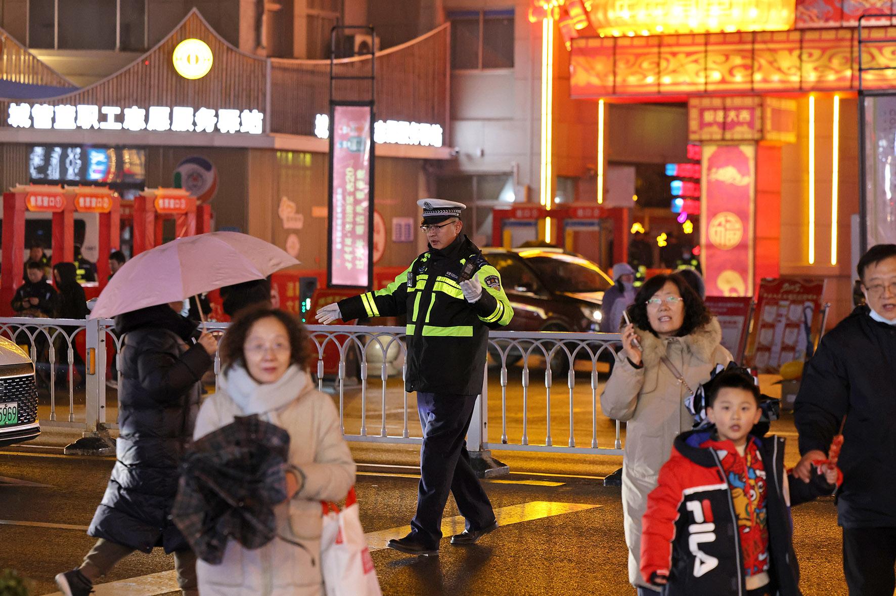 2月11日,山東省棗莊市公安局市中分局交通警察大隊(duì)組織民輔警在花燈會(huì)的主干道重點(diǎn)路段、路口設(shè)置臨時(shí)執(zhí)勤點(diǎn),保障道路安全暢通和賞燈游玩的群眾出行安全。