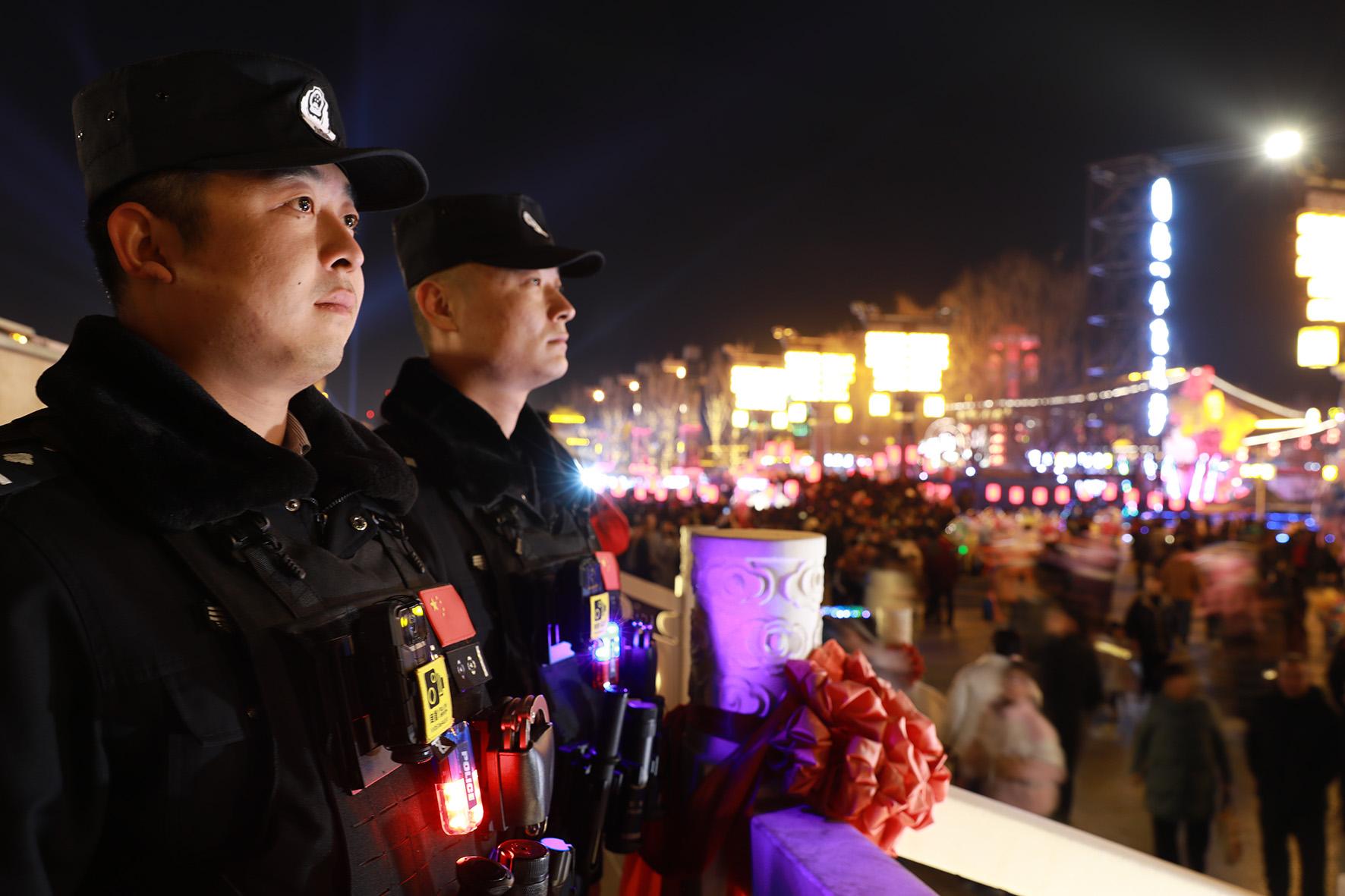 2月12日晚,陜西省富平縣中華郡舉行大型篝火晚會(huì)表演。富平縣公安局全力做好安保工作,確保群眾度過(guò)一個(gè)平安祥和的元宵佳節(jié)。