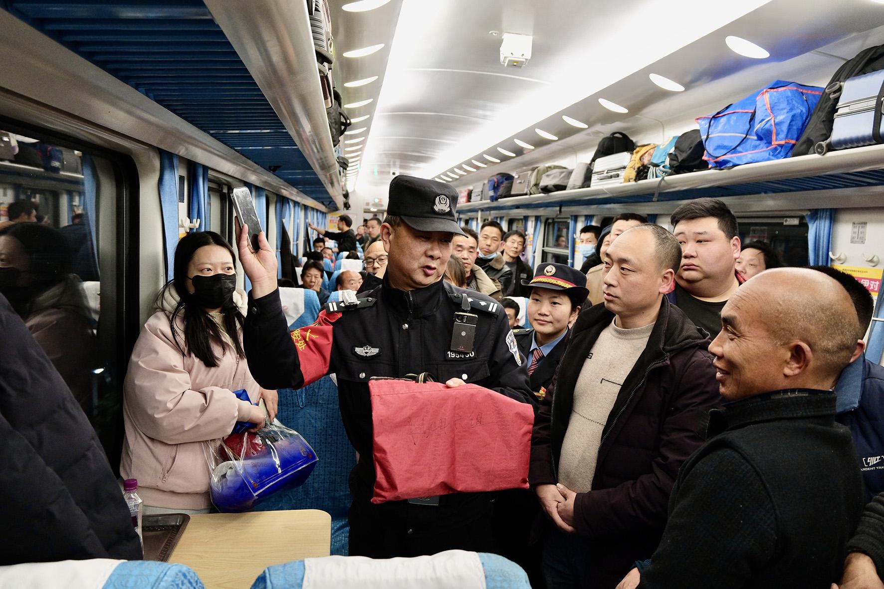 2月13日,武漢鐵路公安局襄陽(yáng)公安處乘警支隊(duì)民警在K644次列車(chē)夜間行車(chē)期間,針對(duì)性開(kāi)展防盜、防騙知識(shí)宣傳,讓旅客們提高安全防范意識(shí)。