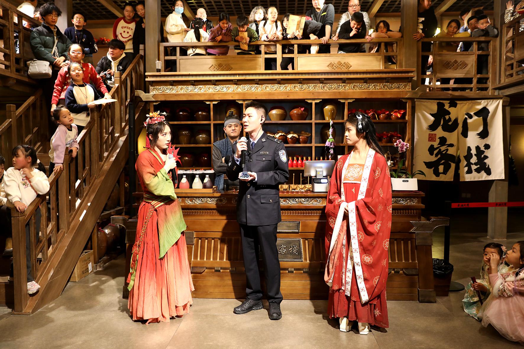 2月21日,甘肅省蘭州市公安局?jǐn)y手招商銀行在蘭州中心風(fēng)起大漢·沉浸式演藝街區(qū),開展“穿越古今·暢聊反詐”線上+線下反詐宣傳活動(dòng),兩個(gè)小時(shí)直播,20.5萬(wàn)人在線互動(dòng)觀看,游客紛紛駐足互動(dòng)參與。