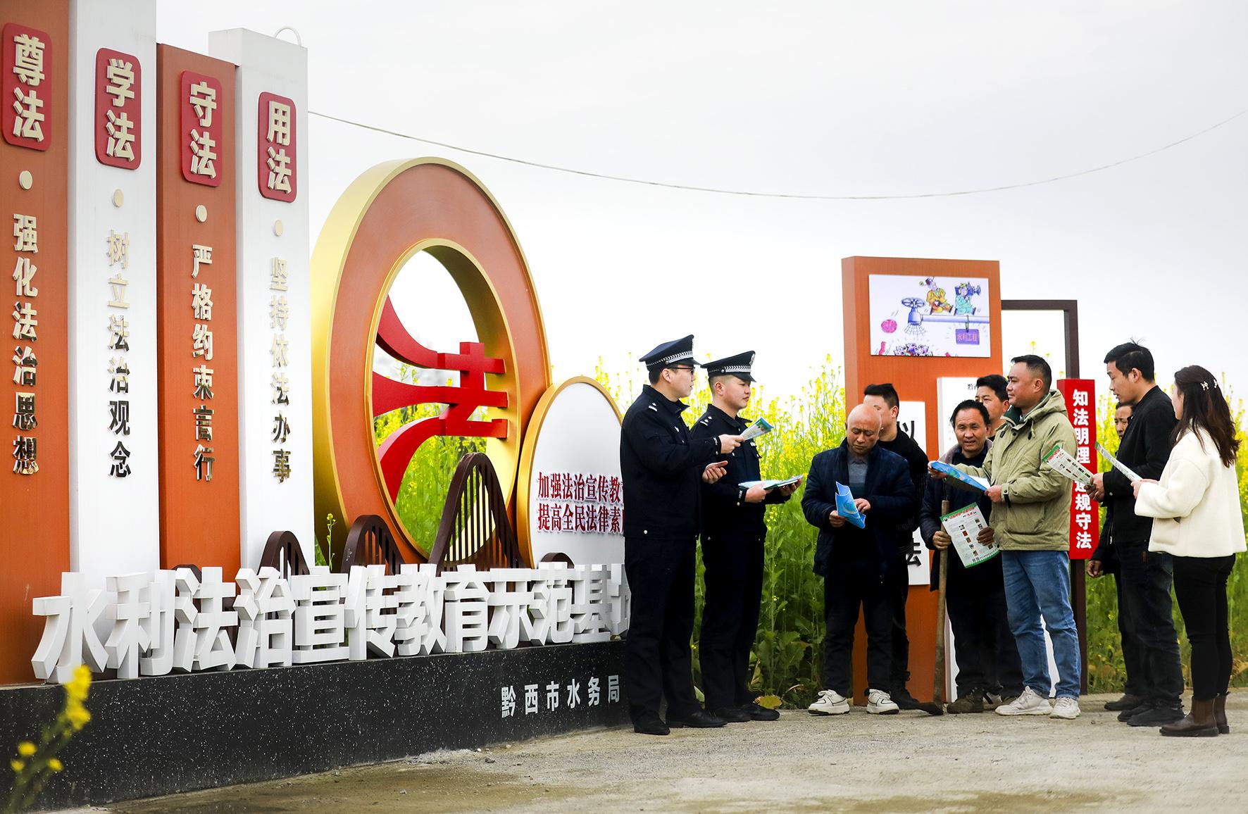 3月20日,貴州省黔西市公安局在轄區(qū)金碧鎮(zhèn)高標準農(nóng)田里,開展“法治宣傳進田間”迎接世界水日活動。
