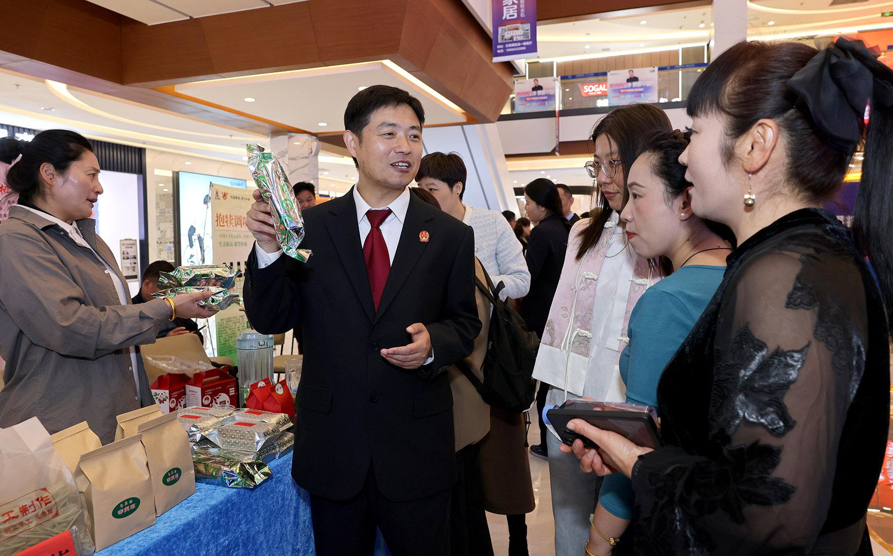 圖為法官向群眾普及農(nóng)產(chǎn)品地理標志保護相關(guān)法律知識。