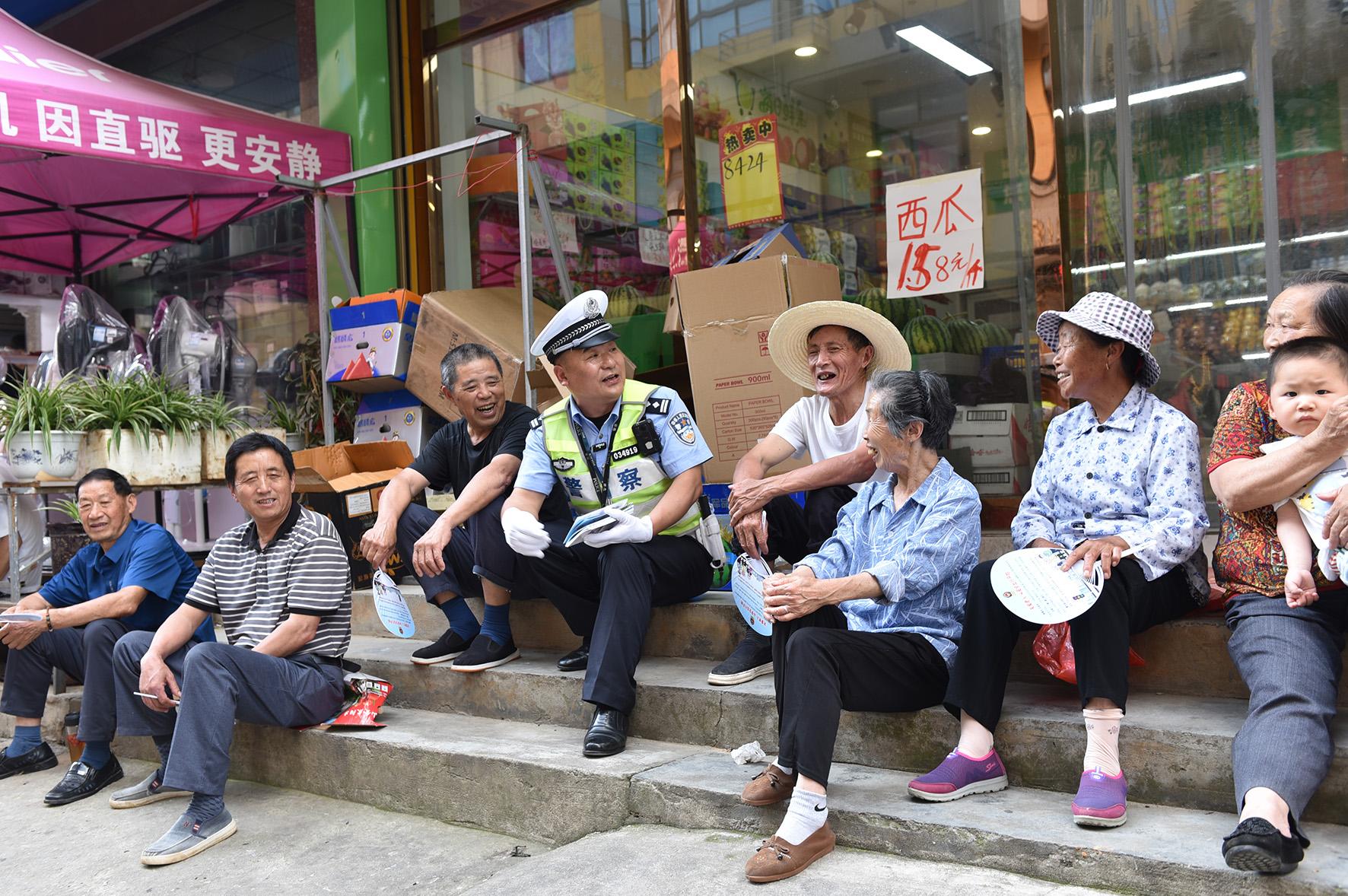 5月21日,安徽省宿松縣公安局交警大隊(duì)民輔警深入農(nóng)村集鎮(zhèn),現(xiàn)場(chǎng)向居民宣講夏季道路交通安全注意事項(xiàng)。