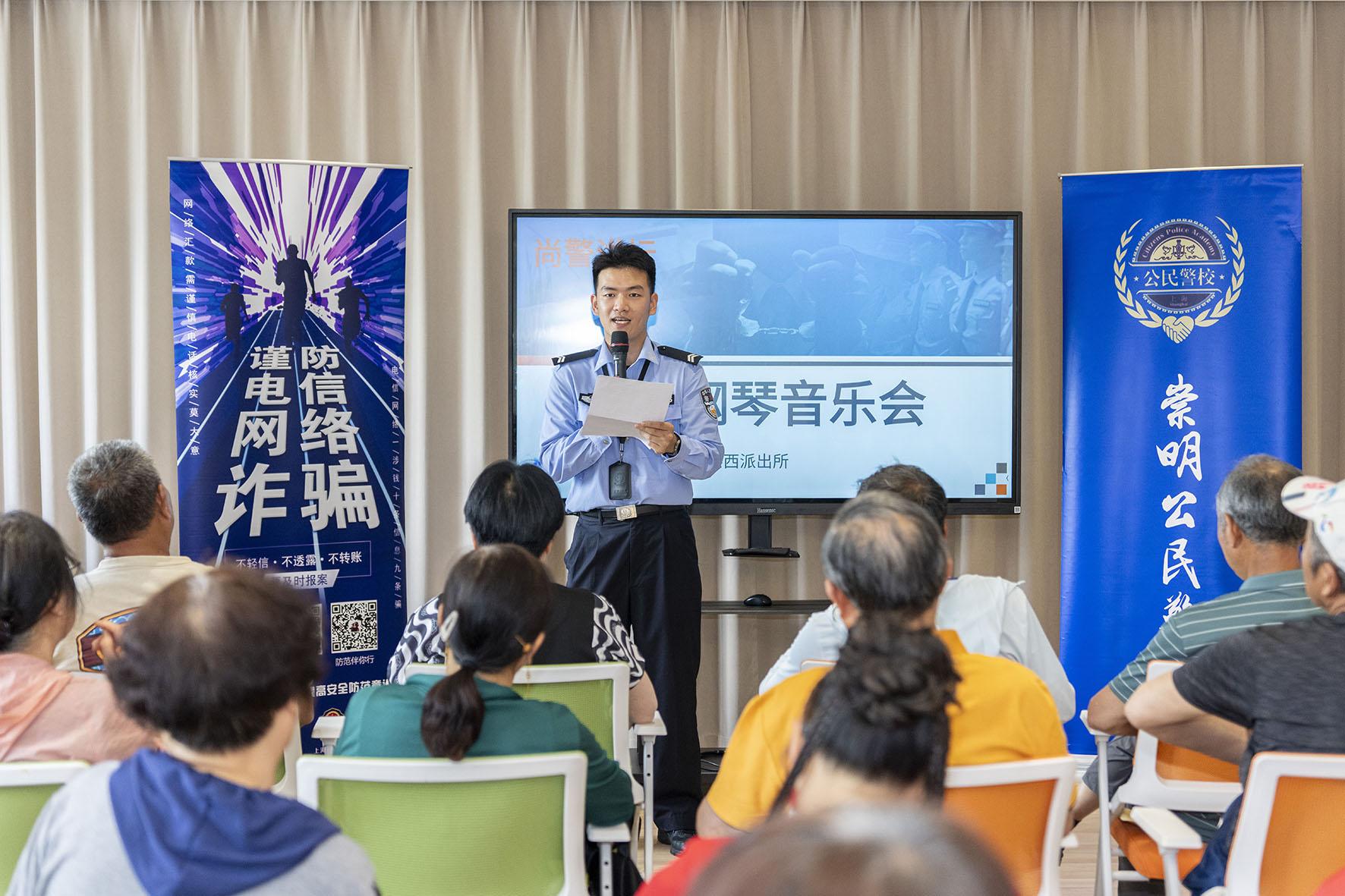 5月26日,上海市公安局崇明分局港西派出所聯(lián)合轄區(qū)老年音樂愛好者,在老年活動(dòng)中心舉辦了一場別開生面的“反詐音樂會(huì)”。