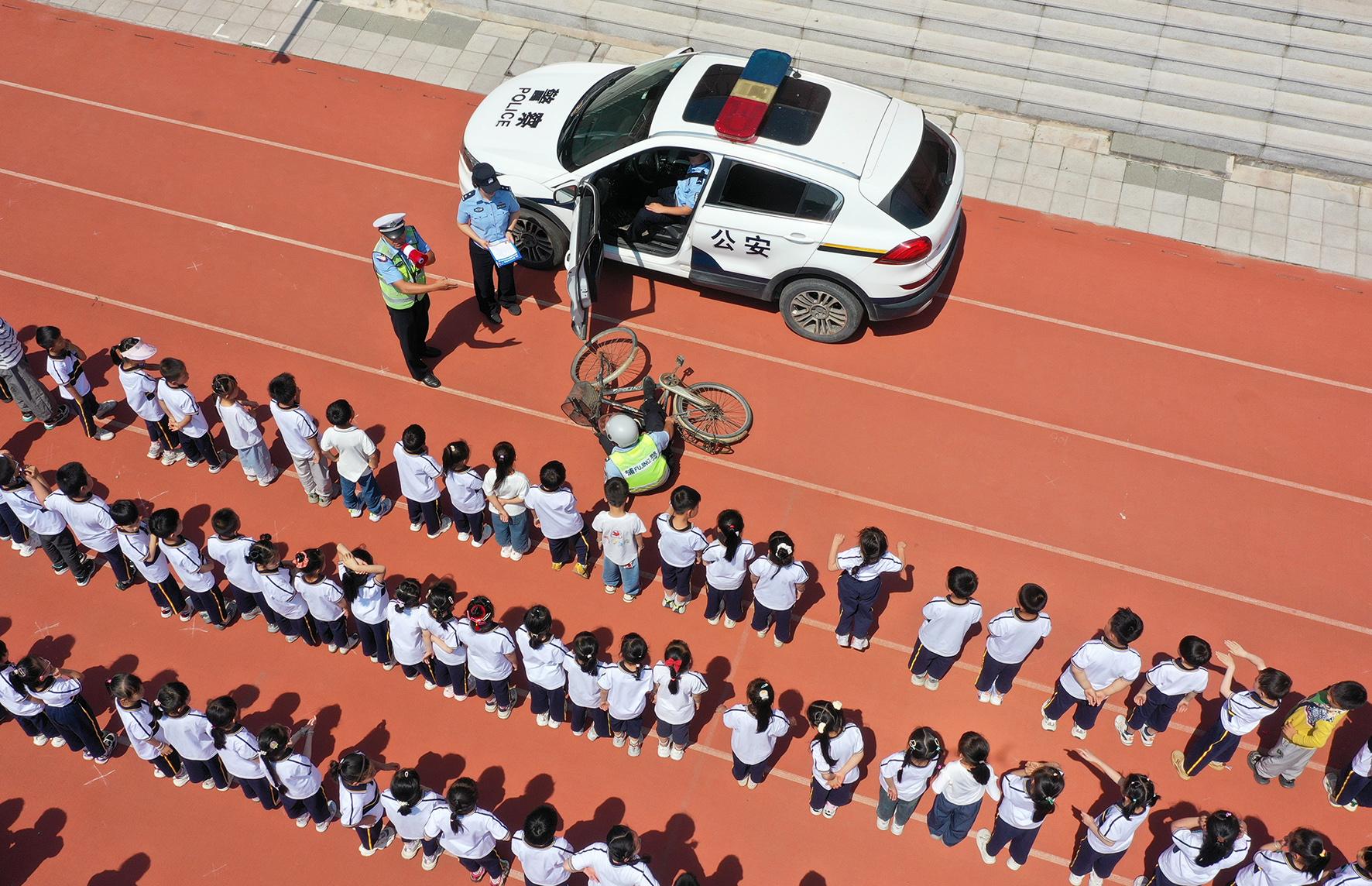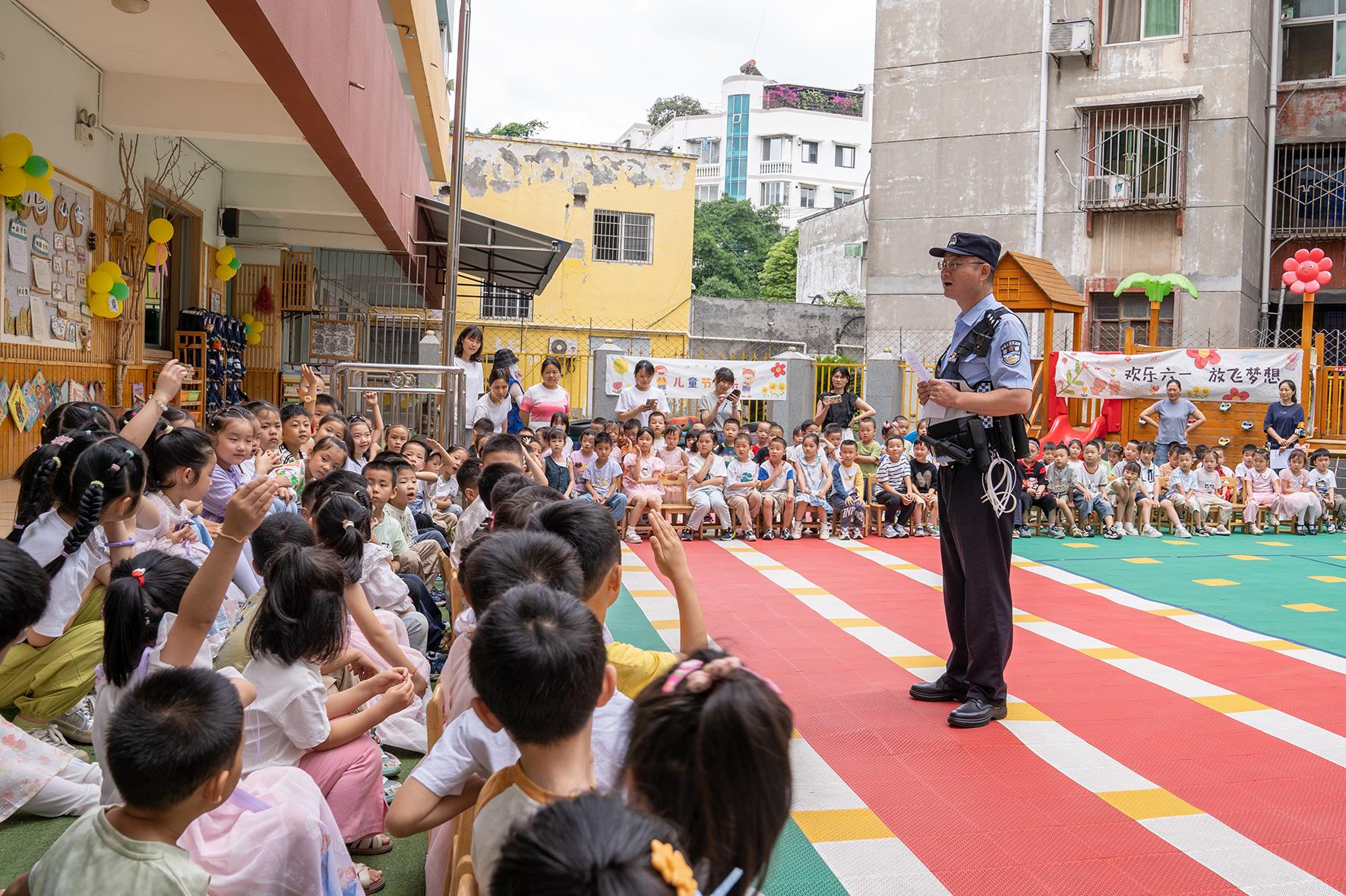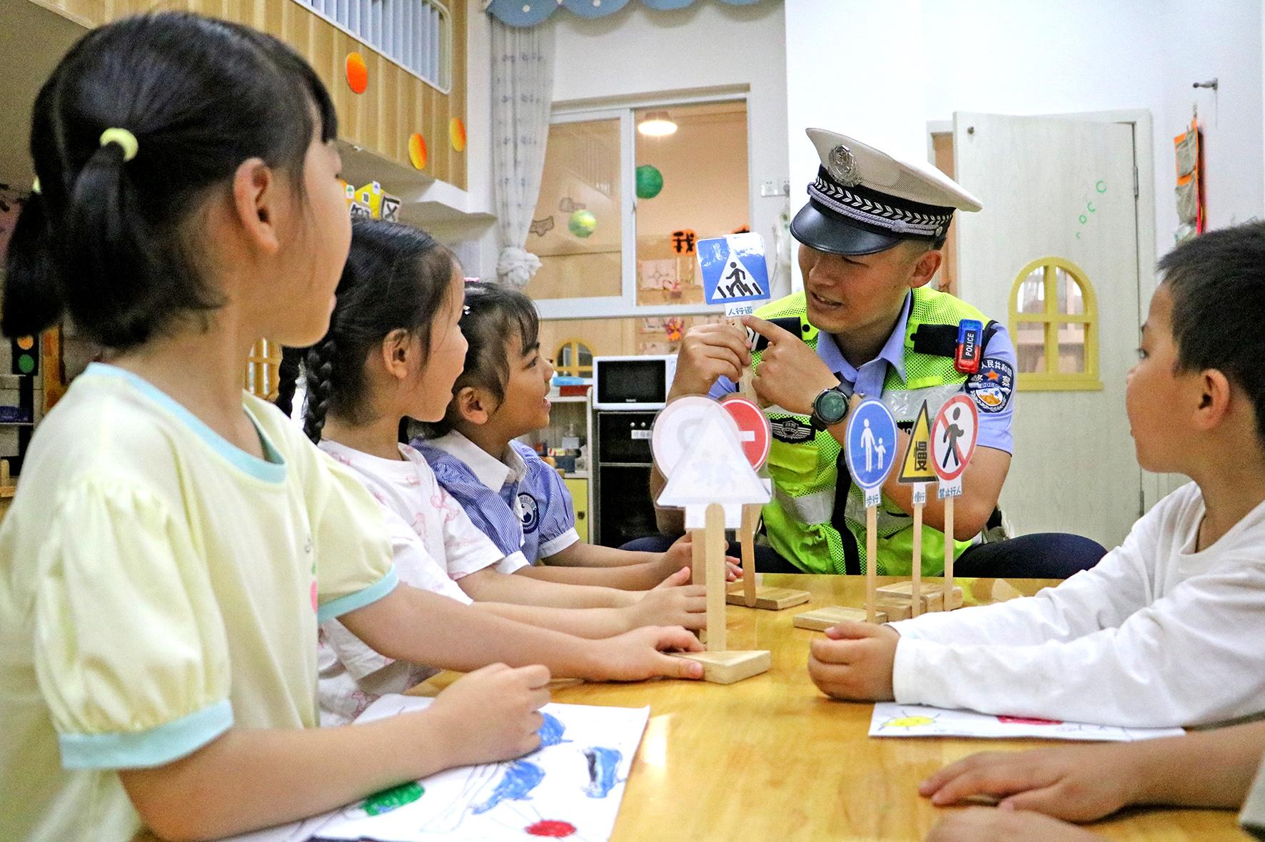 5月28日,四川省綿陽市公安局交警支隊直屬一大隊走進(jìn)轄區(qū)幼兒園,向小朋友講解“知危險 會避險”知識,進(jìn)一步增強(qiáng)交通安全意識。