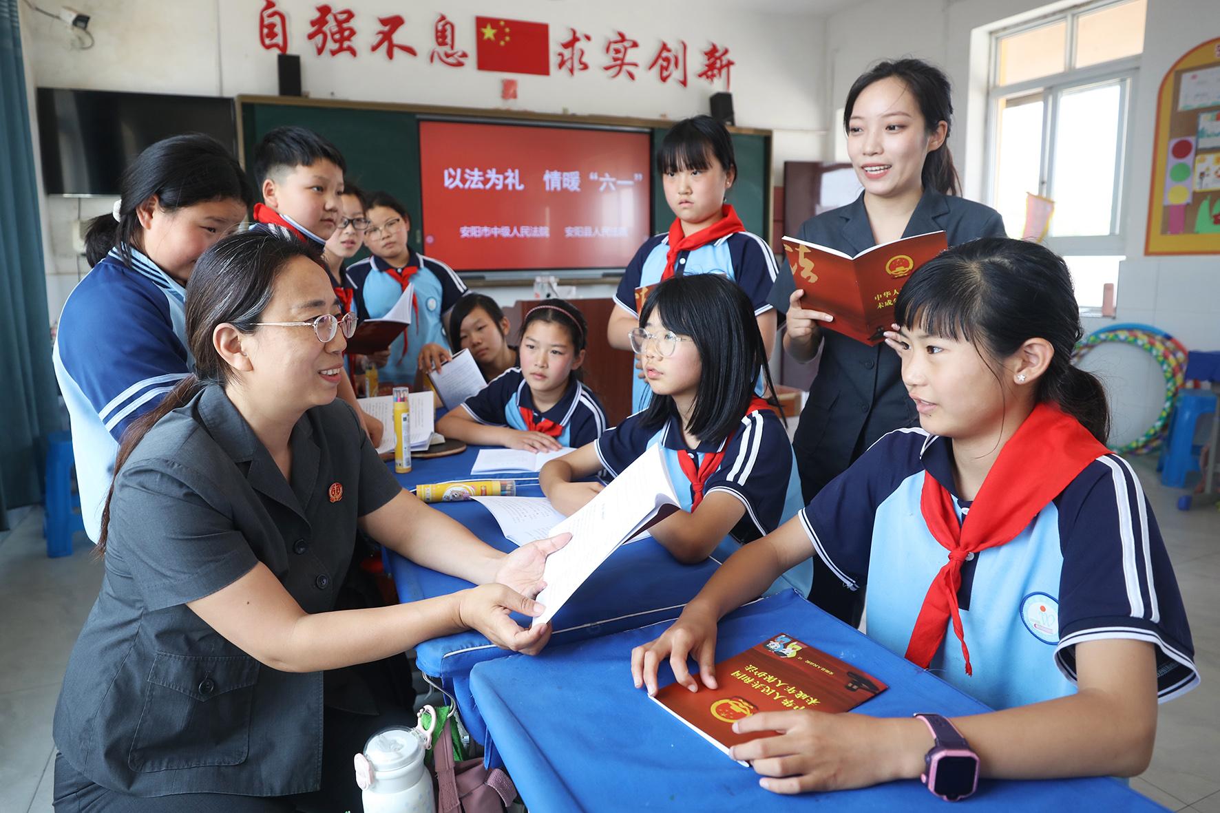 5月29日,河南省安陽市中級人民法院聯(lián)合安陽縣人民法院開展“以法為禮 情暖六一”法治進(jìn)校園活動。