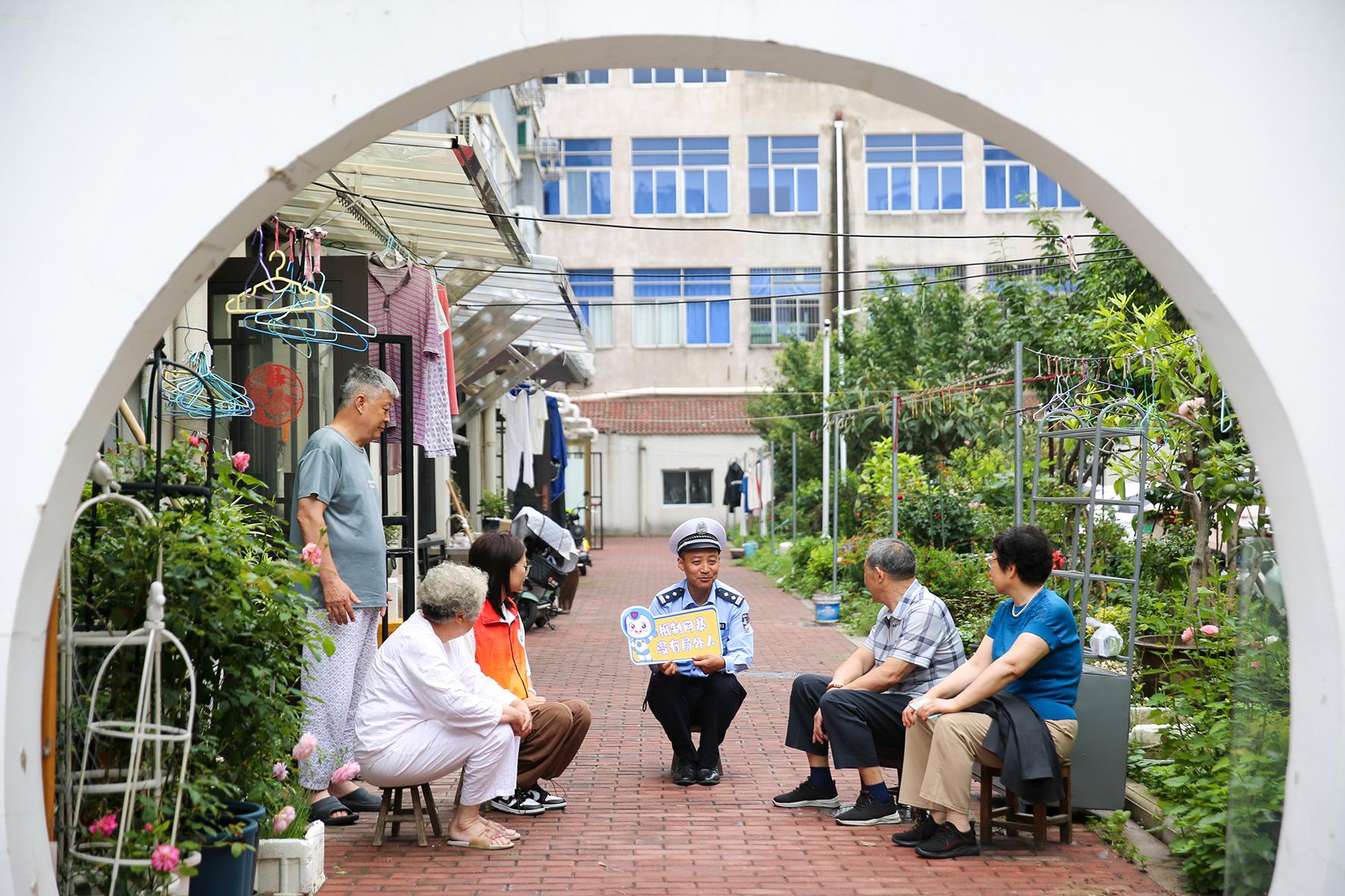 6月9日,江蘇省如皋市公安局民警在如城街道安定社區(qū)向居民開(kāi)展網(wǎng)絡(luò)舉報(bào)和辟謠宣傳。