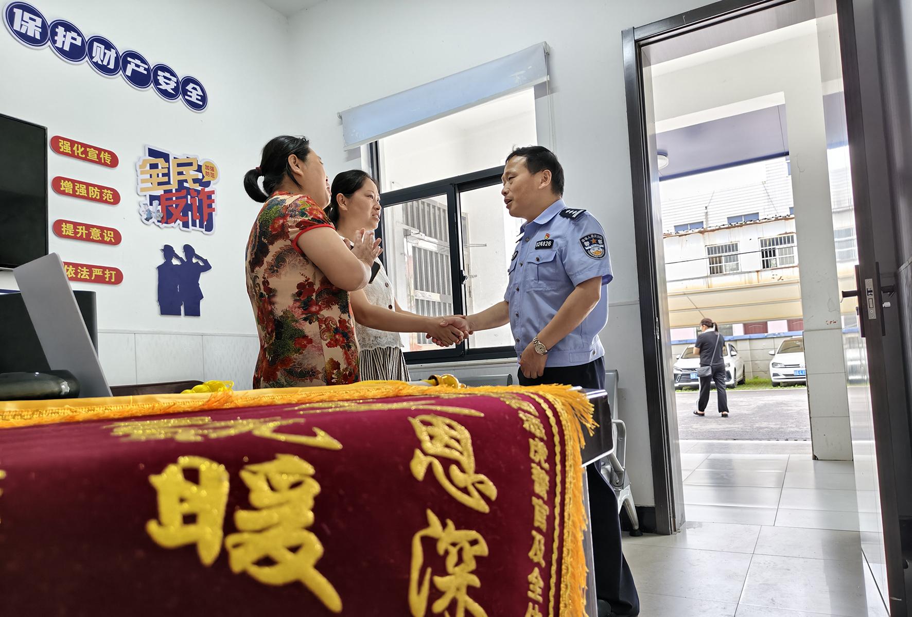 6月20日一大早,安徽省當(dāng)涂縣石橋鎮(zhèn)的兩位村民來(lái)到石橋派出所,給民警送上了一面“尋母之恩深似海 為民解憂暖人心”錦旗,感謝民警幫助其找回走失的母親。