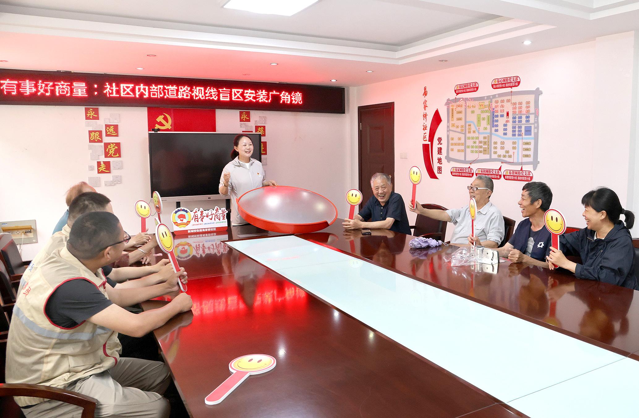 6月23日,江蘇省南通市崇川區(qū)新城橋街道易家橋社區(qū)“有事好商量”議事室就“社區(qū)內(nèi)部道路視線盲區(qū)安裝廣角鏡”開展協(xié)商議事。最終在各方努力下廣角鏡安裝到位,消除了行駛車輛的視線盲區(qū)和安全隱患。