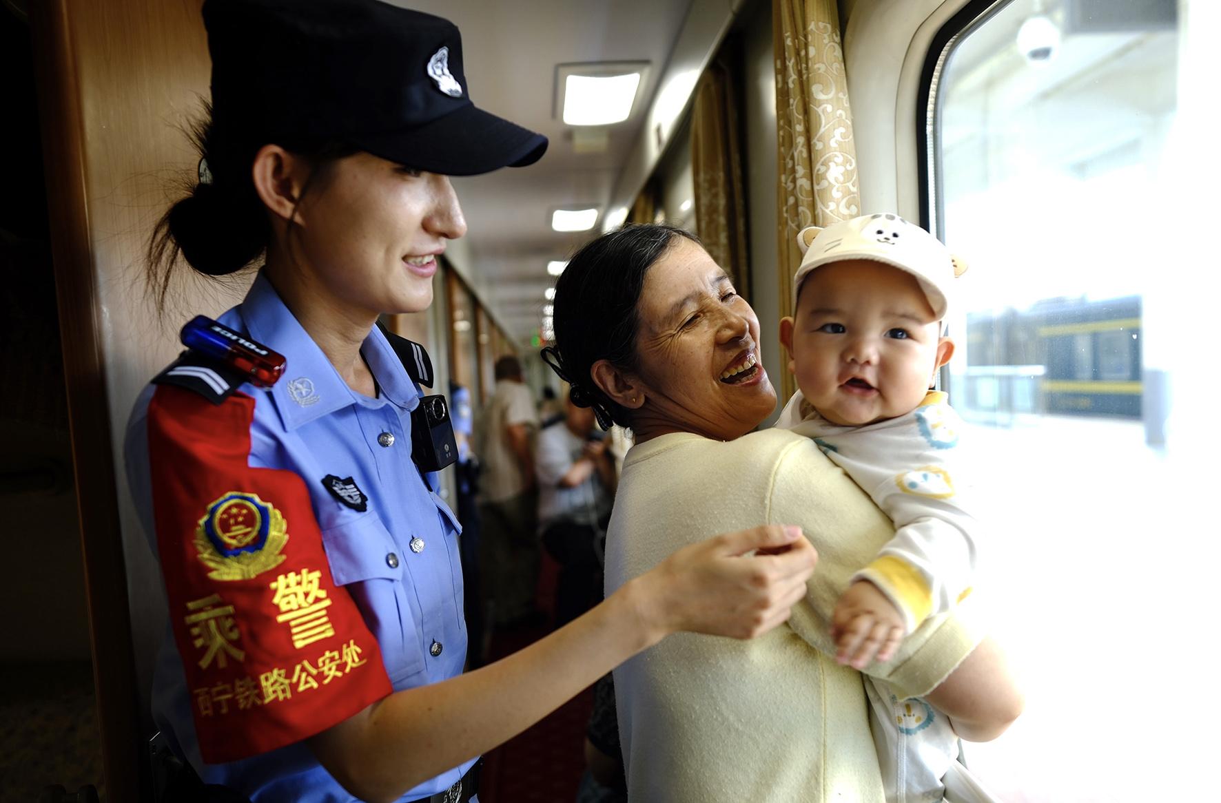 7月1日,青藏鐵路公安局西寧公安處乘警支隊(duì)民警在從四川成都開往青海西寧的K1058次列車上服務(wù)旅客。
