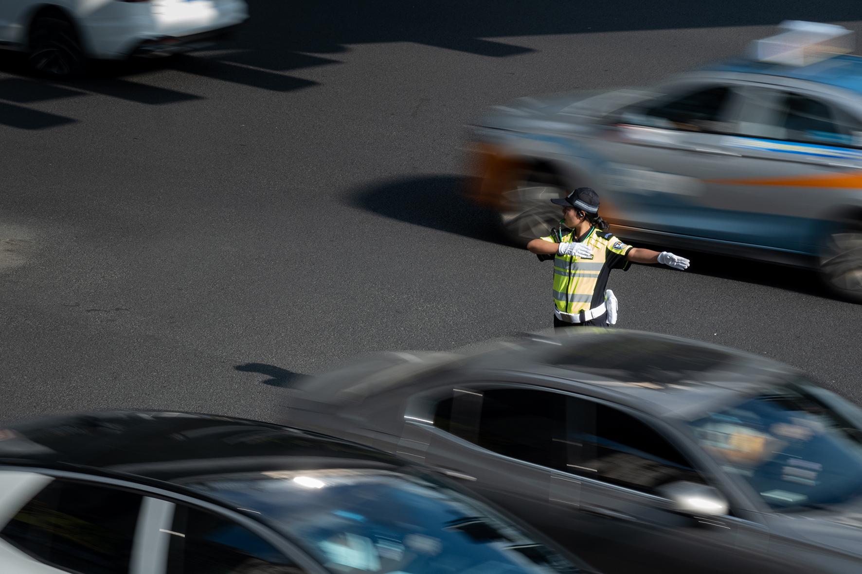 圖為7月9日,直屬一大隊民警在城區(qū)臨園路嶺南路口執(zhí)勤。