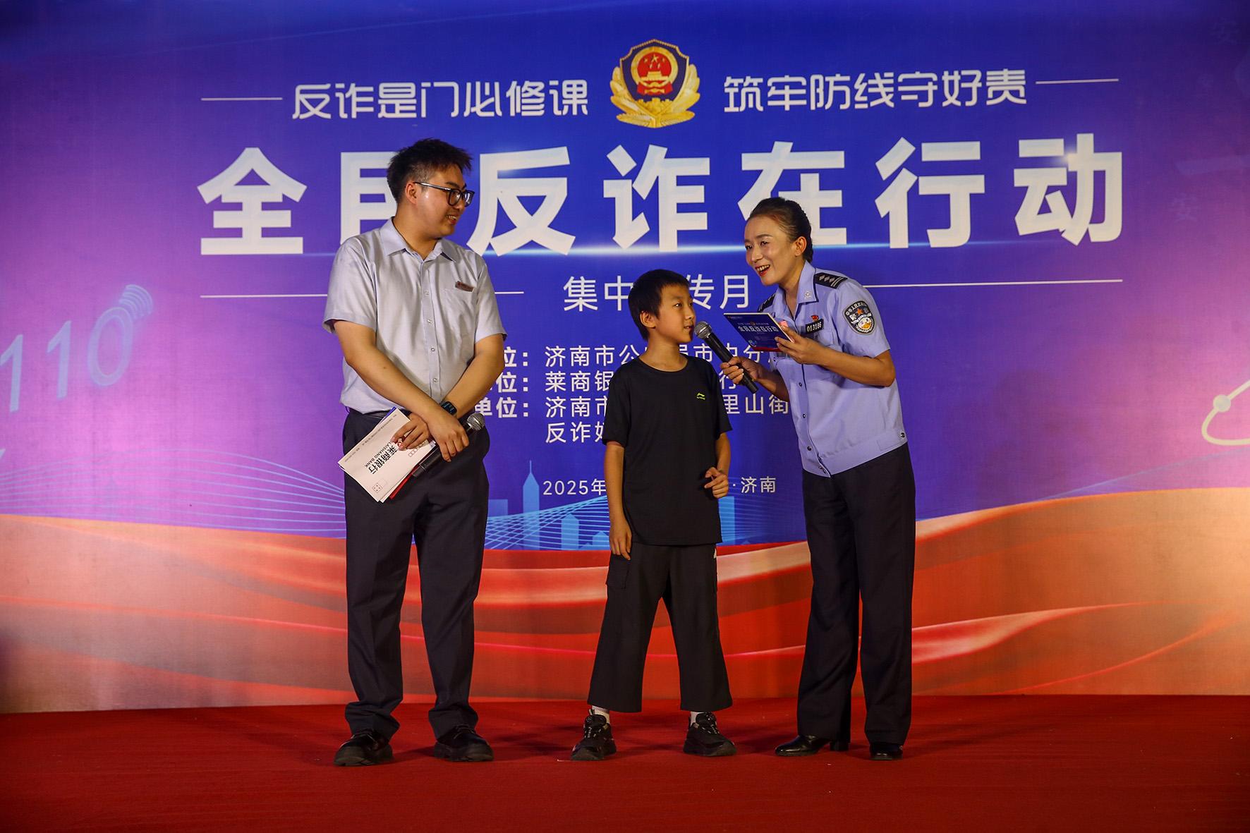 7月11日晚,山東省濟南市公安局市中分局聯(lián)合市中區(qū)六里山街道辦事處等部門舉辦“全民反詐在行動”集中宣傳活動。