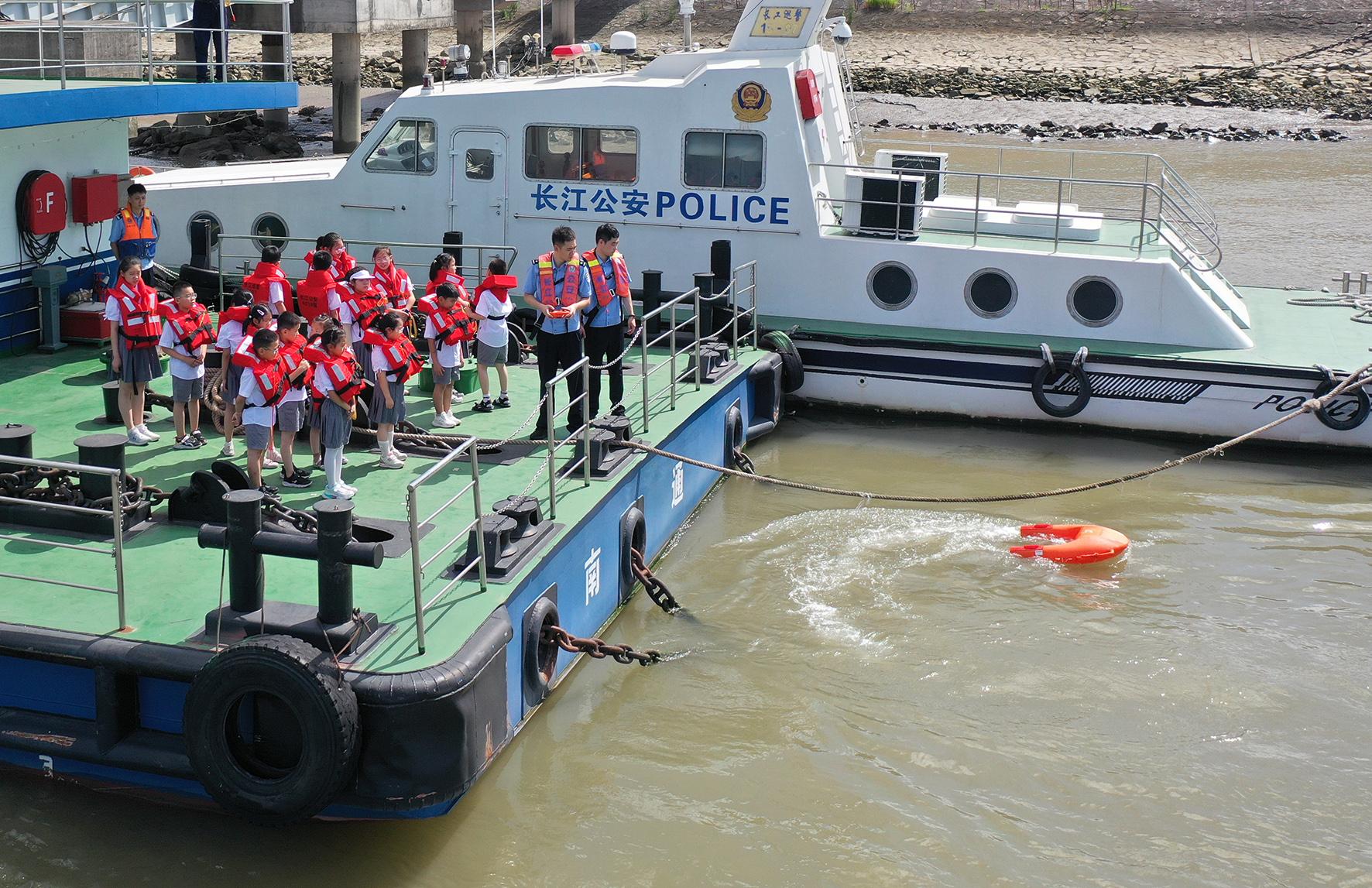 7月23日,長江航運(yùn)公安局南通分局通州派出所民警在水上執(zhí)法基地為愛心暑托班的孩子們宣講防溺水安全知識。