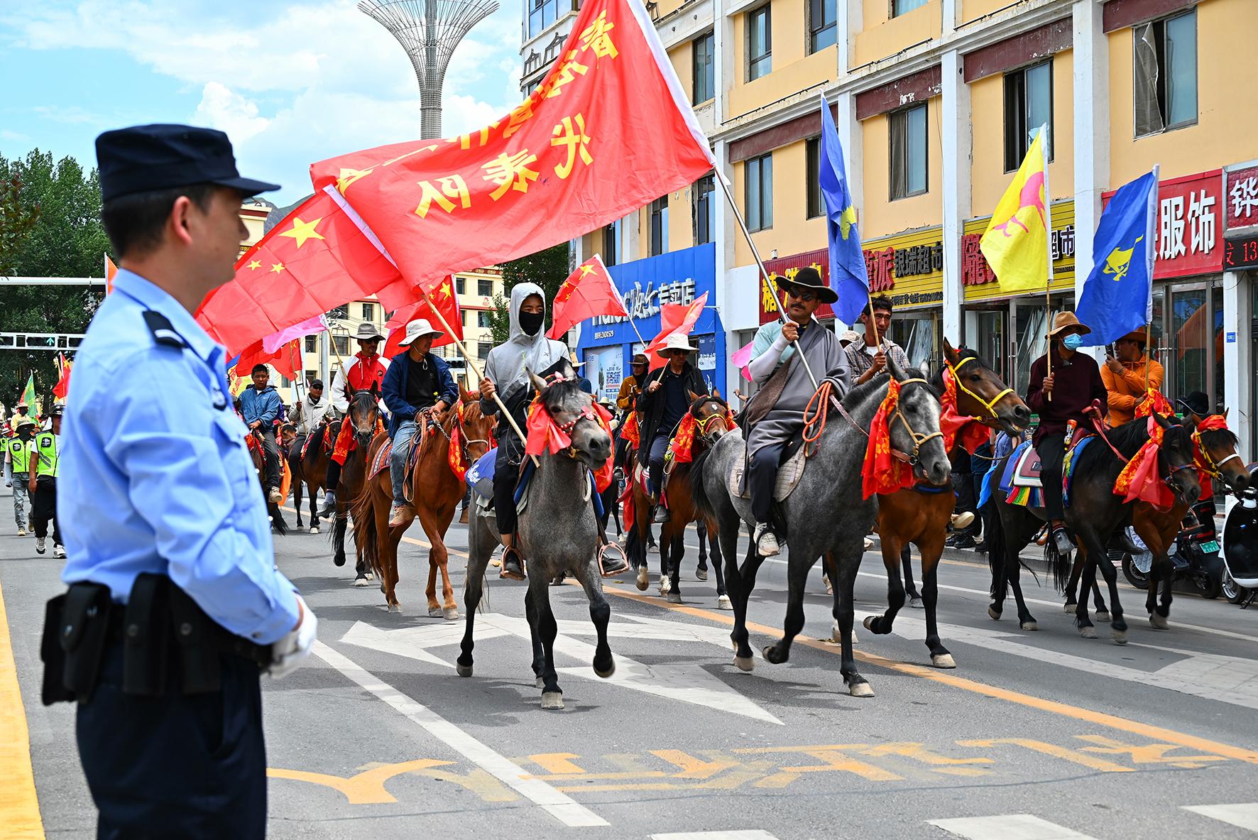 7月28日,甘肅省肅南裕固族自治縣舉辦駿馬巡游活動。肅南裕固族自治縣公安局組織50名警力、警車14臺次,為活動進(jìn)行服務(wù)保障工作。