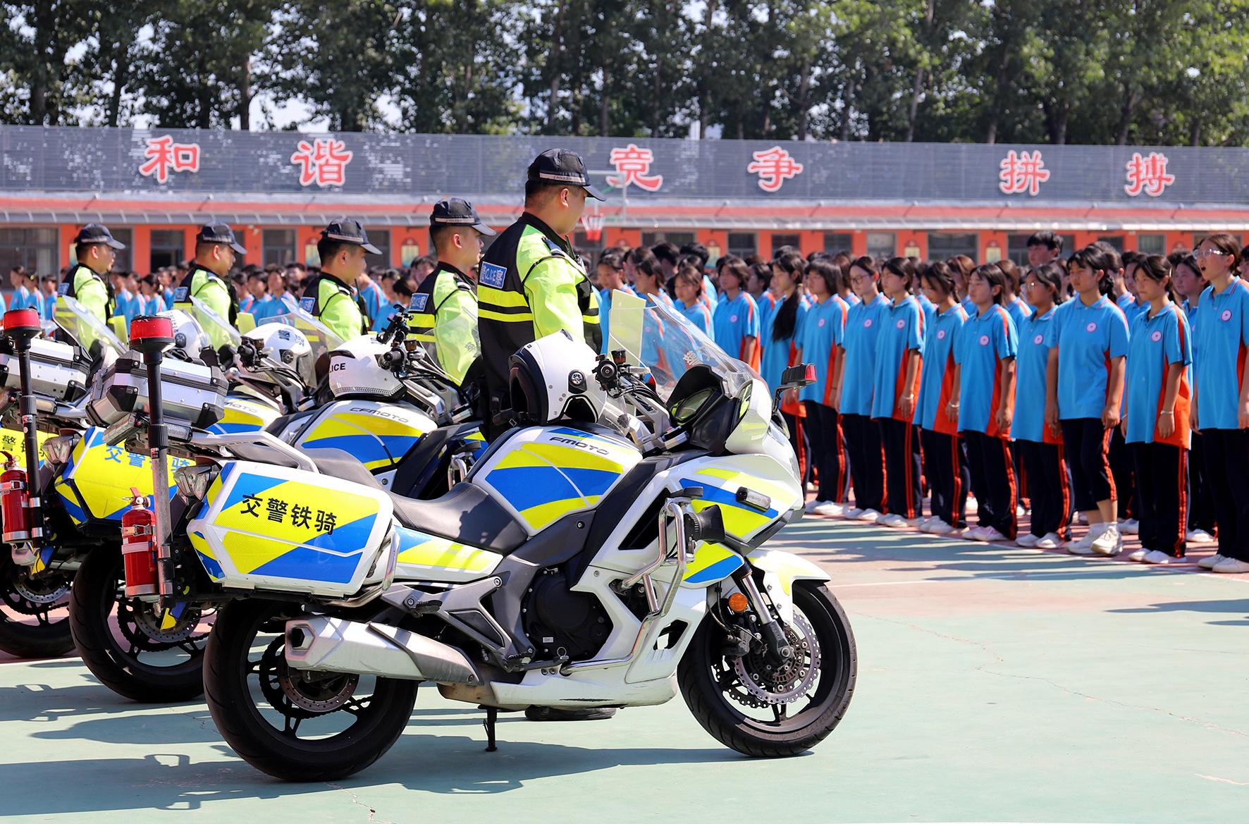 8月19日,安徽省亳州市公安局交通管理支隊鐵騎中隊走進(jìn)宏志中學(xué),為高一新生開展交通安全宣傳。