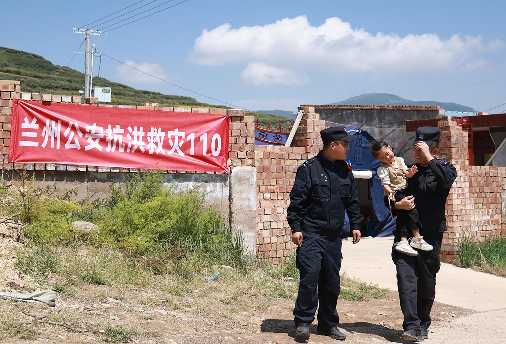 “叔叔來(lái)啦!”8月14日,在甘肅榆中縣新?tīng)I(yíng)鎮(zhèn)八門(mén)寺小泥窩村的公安指揮部帳篷里,一聲清脆稚嫩的呼喊打破了忙碌的氛圍,小女孩瑤瑤像一只歡快的小鳥(niǎo),一頭撲進(jìn)蘭州市公安局新區(qū)分局輔警蘇明凱、張?jiān)品宓膽牙铩?/p>