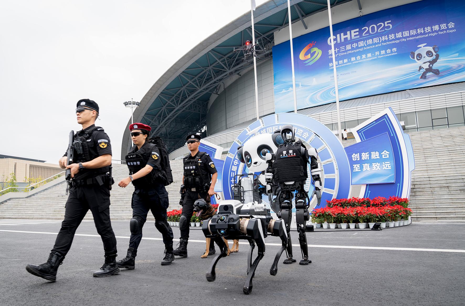 9月26日,第十三屆中國(guó)(綿陽(yáng))科技城國(guó)際科技博覽會(huì)開幕。四川省綿陽(yáng)市公安局組織警力,全力筑牢科博會(huì)安全屏障。值得一提的是,警用機(jī)器狗、人形巡邏機(jī)器人、無(wú)人巡邏車及空中無(wú)人機(jī)的加入,為巡邏防控工作注入了全新的科技活力。