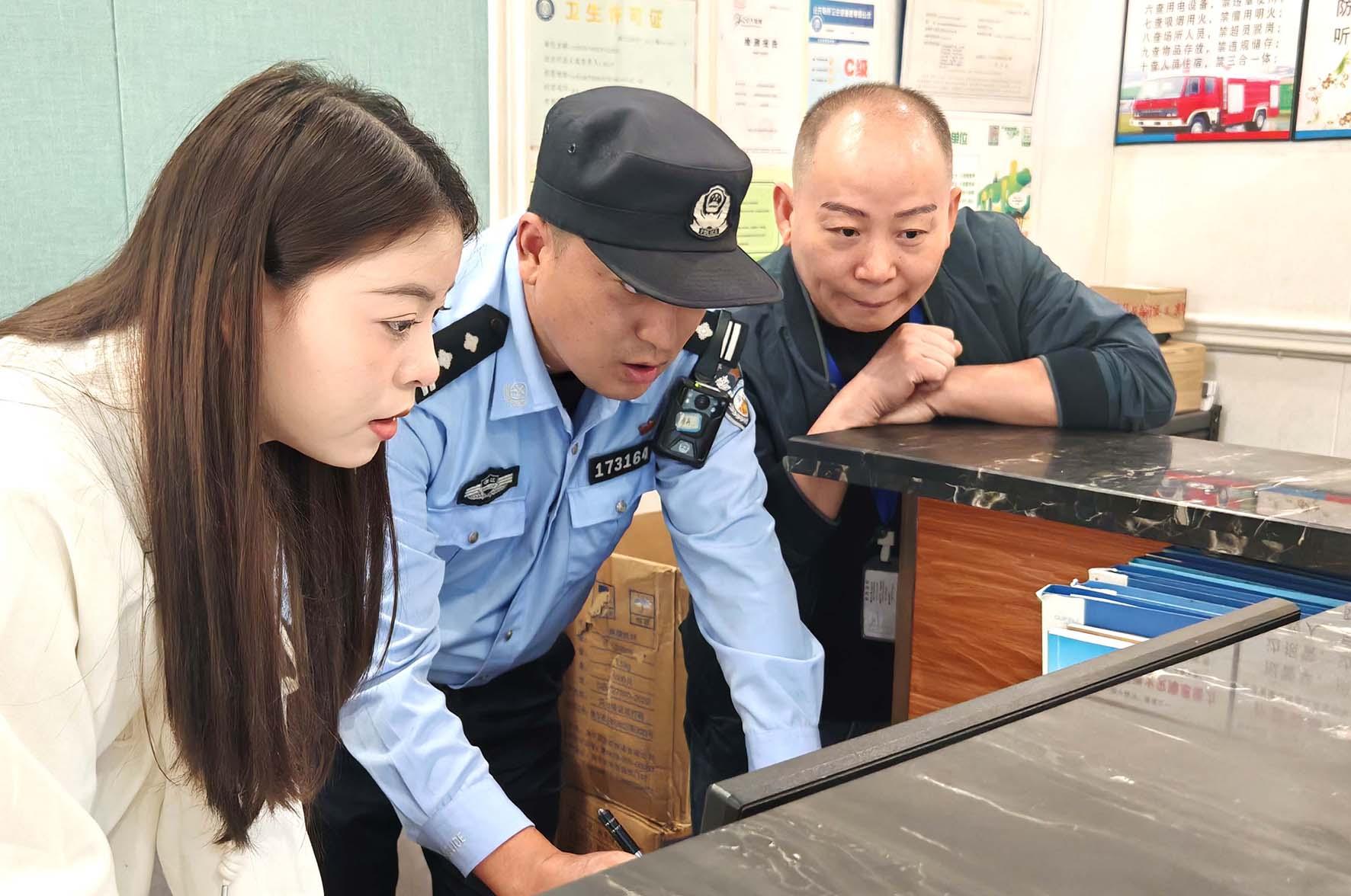 10月24日,浙江省臺州市公安局椒江分局府前派出所民警對旅館業(yè)的“四實”(實名、實數(shù)、實時、實情)登記進行檢查。