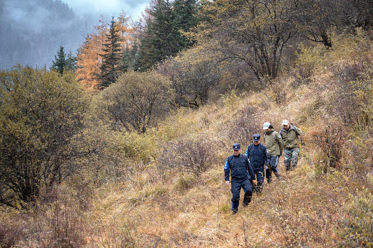 10月31日,四川省平武縣公安局白馬派出所民警聯(lián)合護(hù)林員在大熊貓國家公園王朗片區(qū)進(jìn)行巡邏。