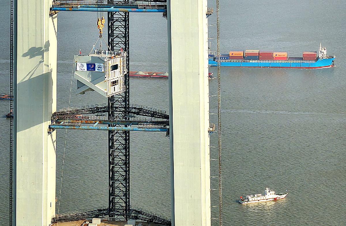 12月1日,江蘇張靖皋長(zhǎng)江大橋南航道橋南主塔成功封頂。張家港海事局采取優(yōu)化施工水域警戒力量、深化節(jié)段梁水上運(yùn)輸風(fēng)險(xiǎn)隱患排查、強(qiáng)化智慧立體動(dòng)態(tài)監(jiān)管等一系列有效措施,為國(guó)家重點(diǎn)工程建設(shè)保駕護(hù)航。