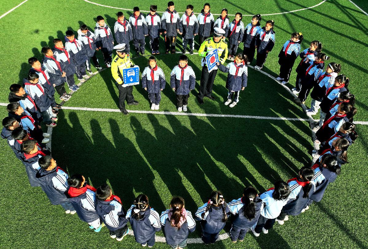 12月1日,在江蘇省連云港市院前小學(xué),連云港市公安局交警支隊(duì)連云大隊(duì)民警為學(xué)生講解交通安全知識。