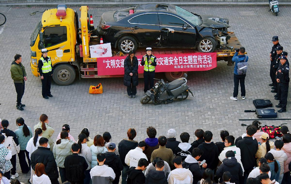 12月1日,安徽省當(dāng)涂縣公安局交管大隊(duì)民警走進(jìn)馬鞍山學(xué)院開展“全國交通安全日”主題宣傳。
