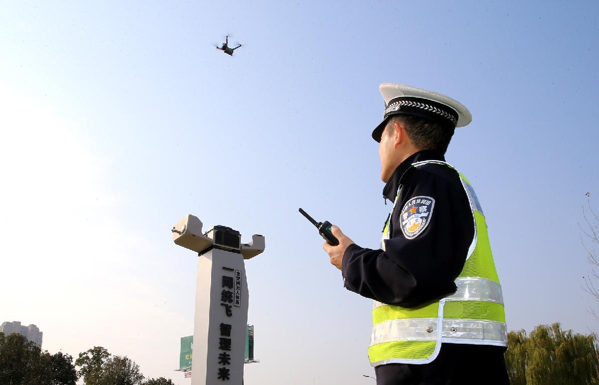 圖為警用無人機(jī)從首批部署的無人機(jī)機(jī)巢起飛巡查。