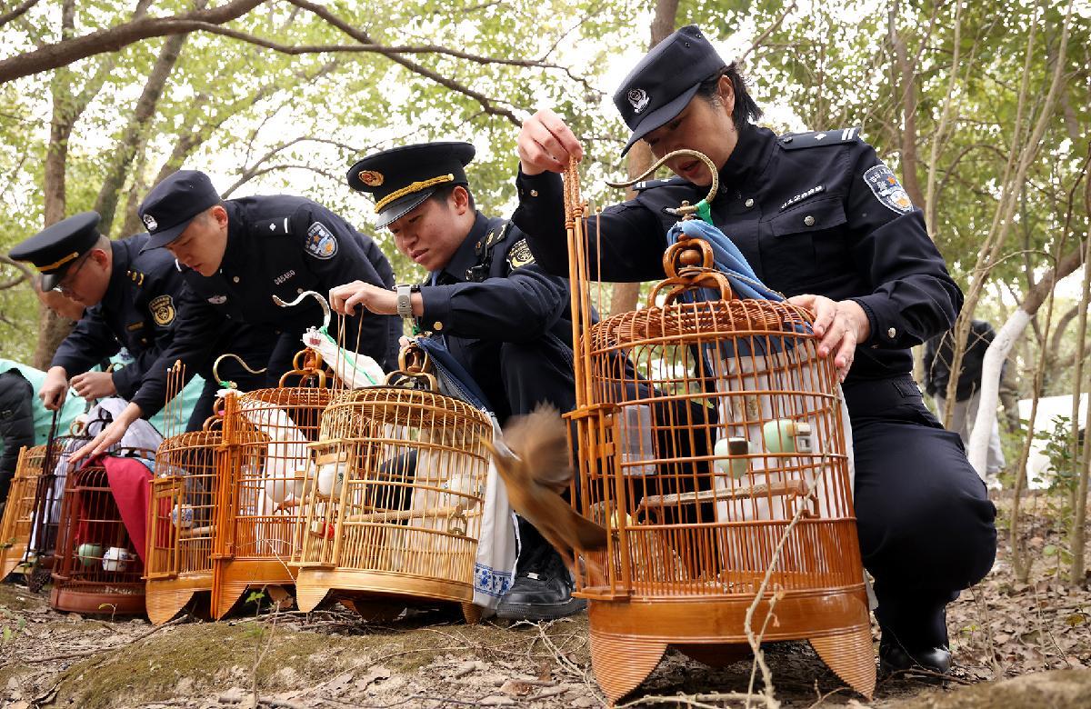 1月4日,浙江省嘉興市公安局南湖區(qū)分局環(huán)境資源和食品藥品犯罪偵查大隊聯(lián)合區(qū)綜合執(zhí)法局、區(qū)自然資源和規(guī)劃局,將依法查獲的12只國家二級保護動物畫眉鳥成功放歸大自然。