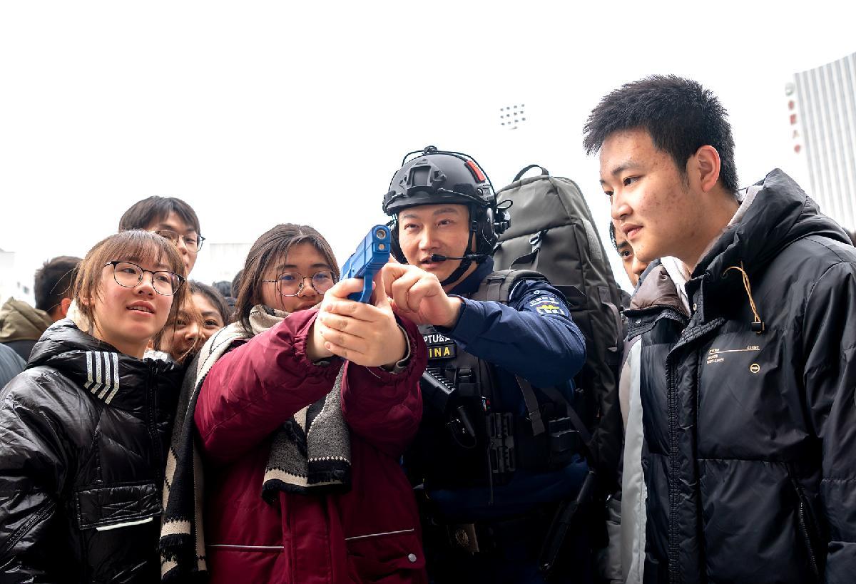 1月5日,安徽省合肥市公安局蜀山分局民輔警走進合肥八中運河校區(qū),舉辦“平安進校園”活動。