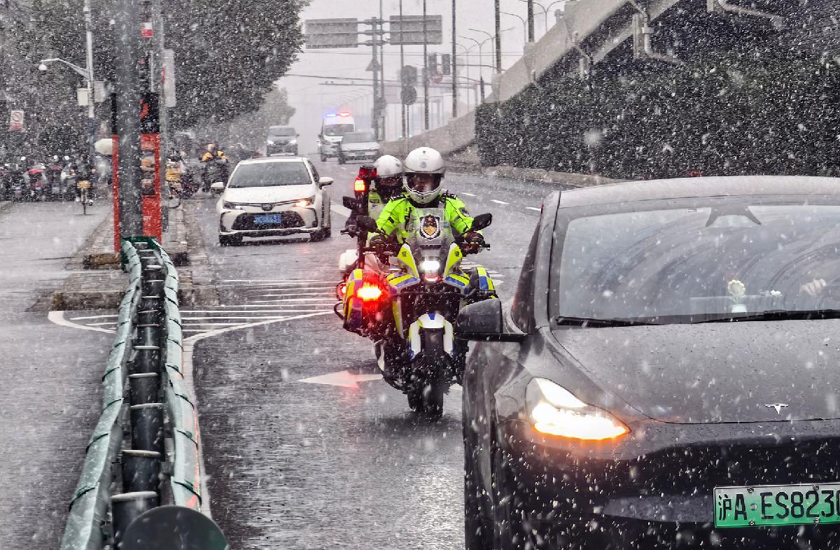 1月20日清晨,申城迎來(lái)雨雪天氣。上海市公安局閔行分局交管支隊(duì)顯性派警,在重點(diǎn)區(qū)域疏導(dǎo)交通,為民紓困。