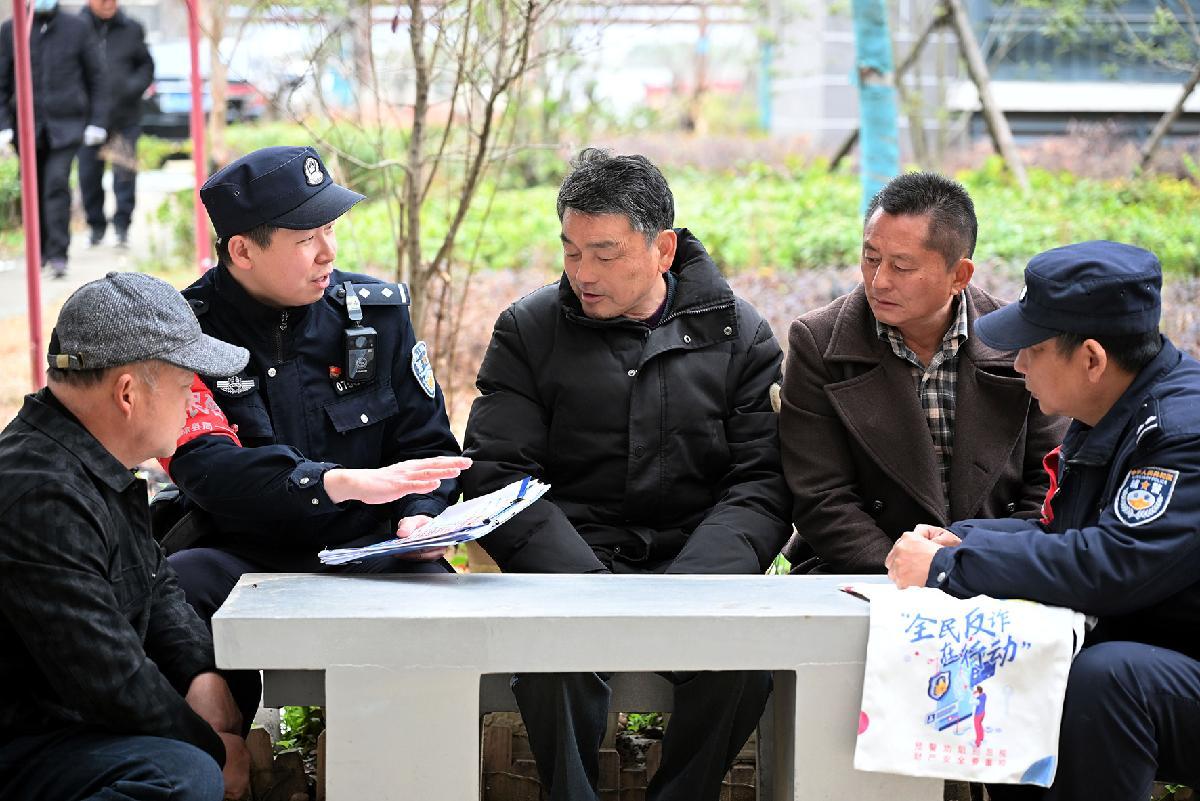 圖為民輔警在洞陽(yáng)村為群眾宣講反詐知識(shí)。