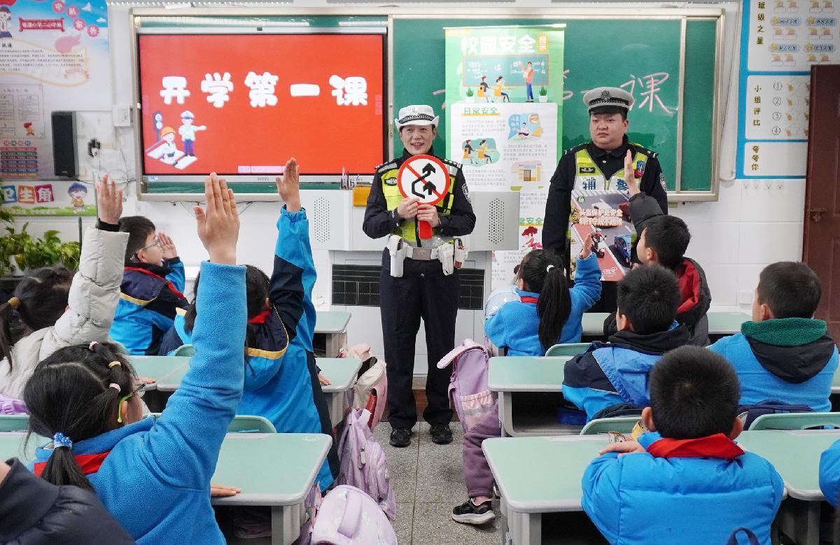 3月2日,四川省廣安市公安局交通管理支隊(duì)、華鎣市公安局交通管理大隊(duì)聯(lián)合組織交通安全知識(shí)宣傳志愿服務(wù)隊(duì),走進(jìn)華鎣市紅巖小學(xué)開展春季開學(xué)安全第一課普法宣傳。