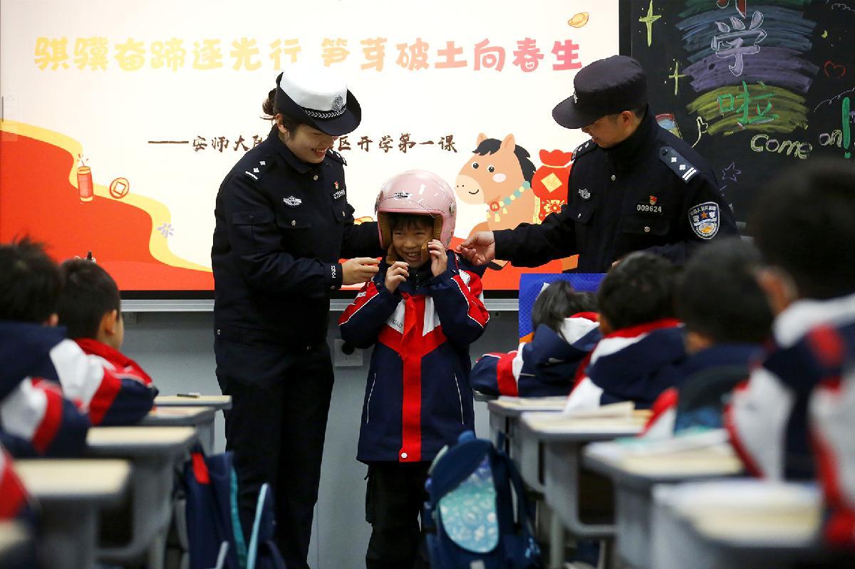 3月2日,安徽省蕪湖市公安局鏡湖交管大隊(duì)聯(lián)合張家山派出所組織開展“迎接新學(xué)期,送法進(jìn)校園”主題開學(xué)第一課活動(dòng)。