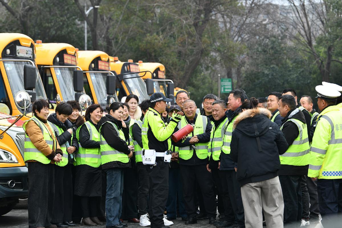 2月28日,安徽省阜南縣公安局交管大隊(duì)組織民警走進(jìn)校車公司開展校車安全檢查,并宣講交通安全注意事項(xiàng)。