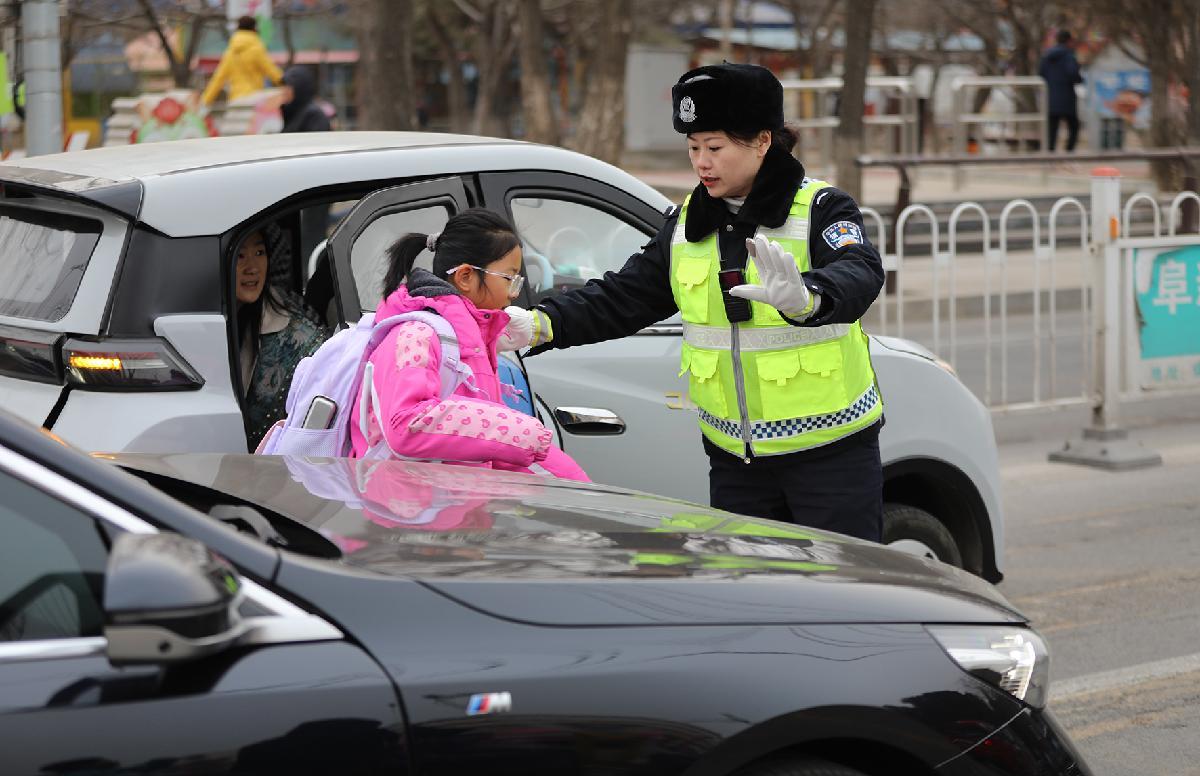 3月2日,遼寧省阜新市公安局交管支隊(duì)細(xì)河大隊(duì)民輔警在護(hù)學(xué)崗執(zhí)勤。
