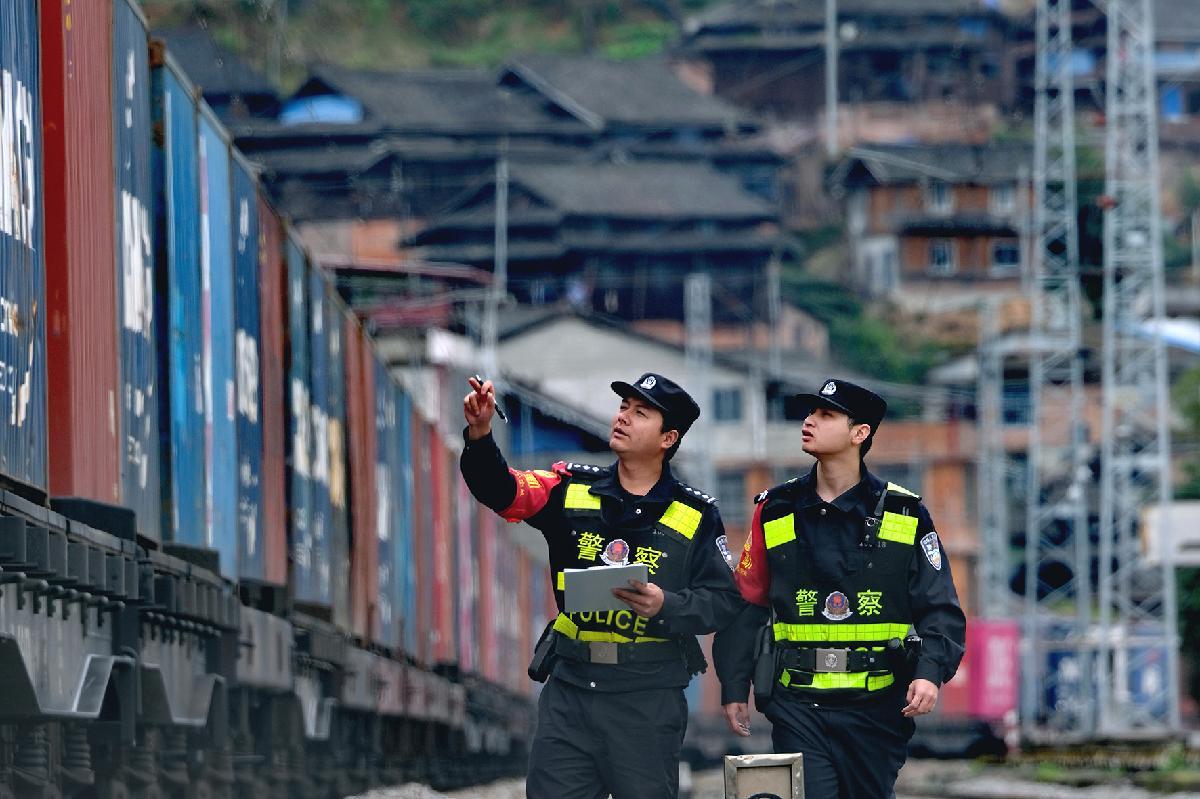 圖為2月28日民警在三江侗族自治縣境內(nèi)的八斗火車站進行治安巡查。