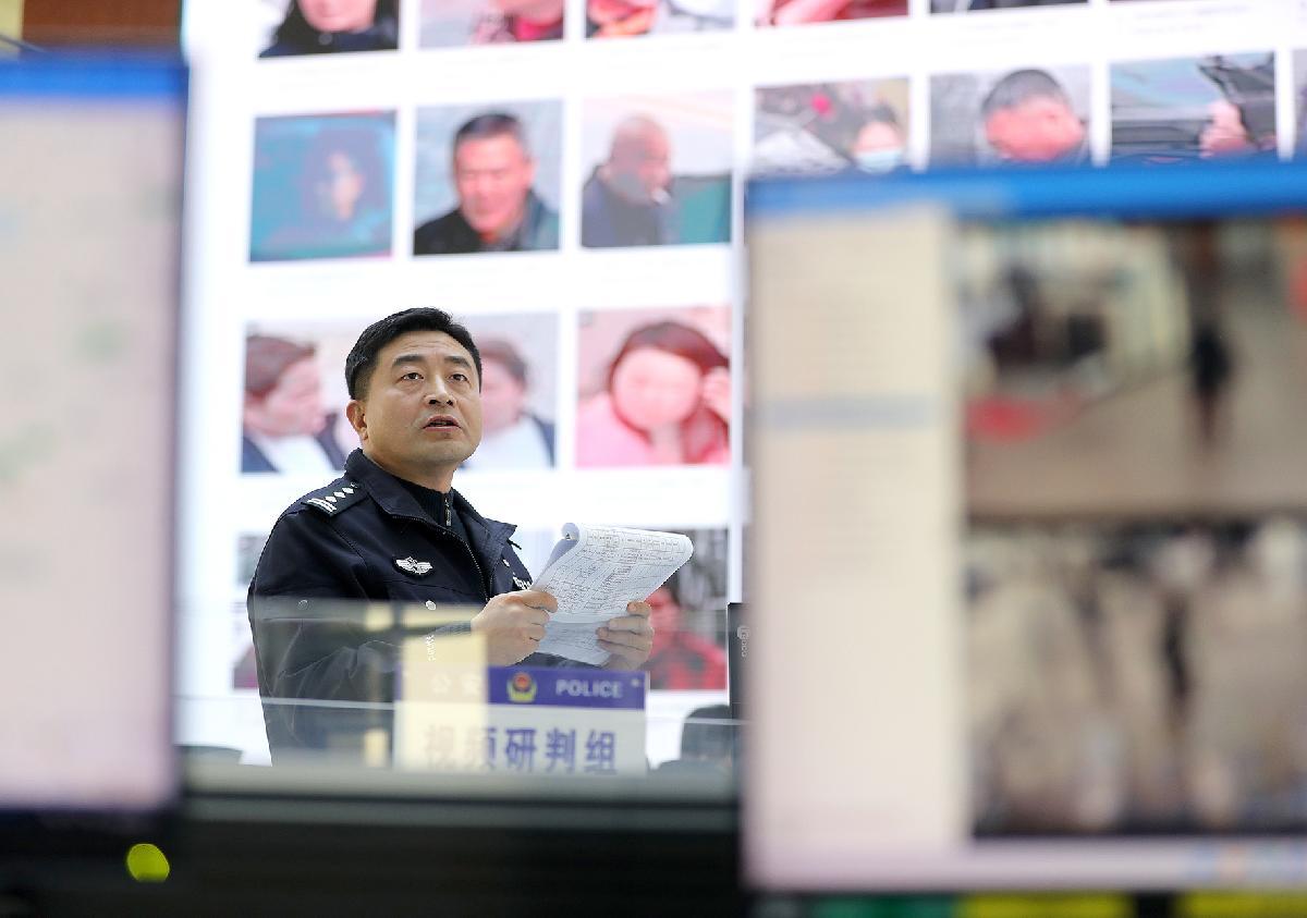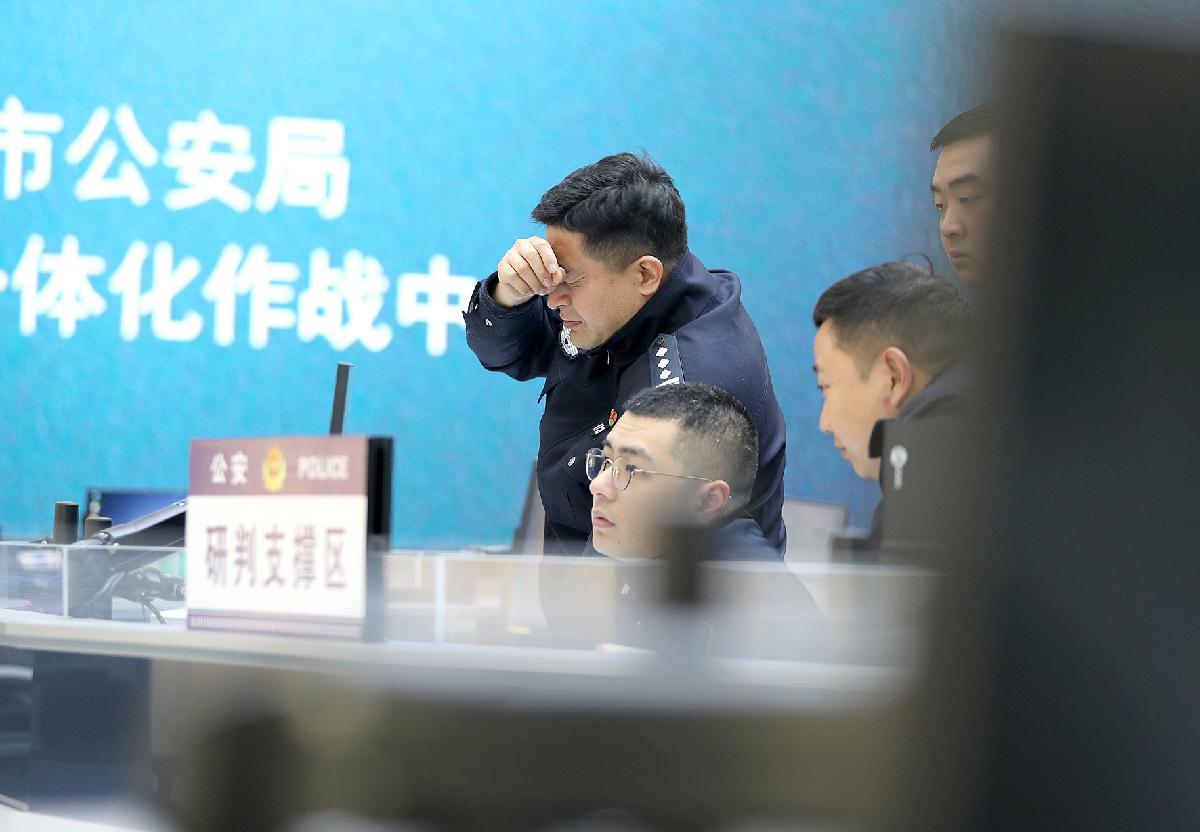 3月9日,在鐘祥市公安局“情指行”一體化作戰(zhàn)中心,民警郭威(中)與同事圍坐在監(jiān)控屏幕前,神情專注地分析畫面細(xì)節(jié)、推進(jìn)案情研判。
