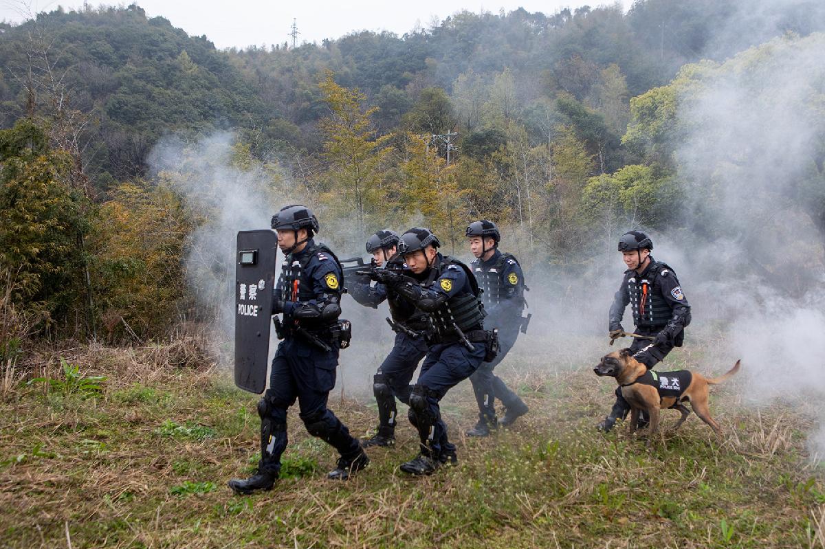 圖為3月23日,巡特警隊(duì)員在野外開展小組搜捕戰(zhàn)術(shù)演練。