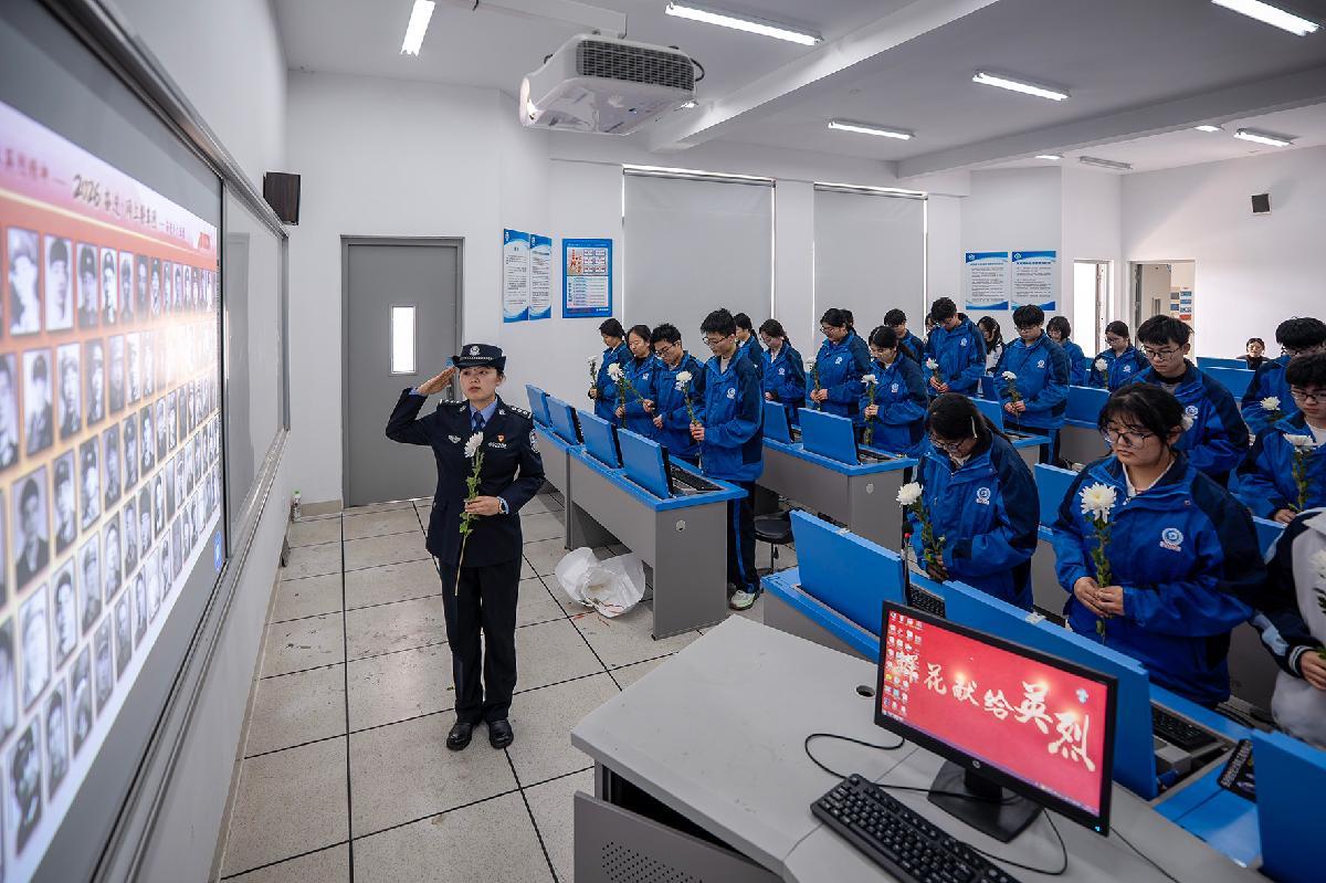 4月1日,浙江省長(zhǎng)興縣公安局?jǐn)y手太湖高級(jí)中學(xué)開展“網(wǎng)上祭英烈”活動(dòng)。