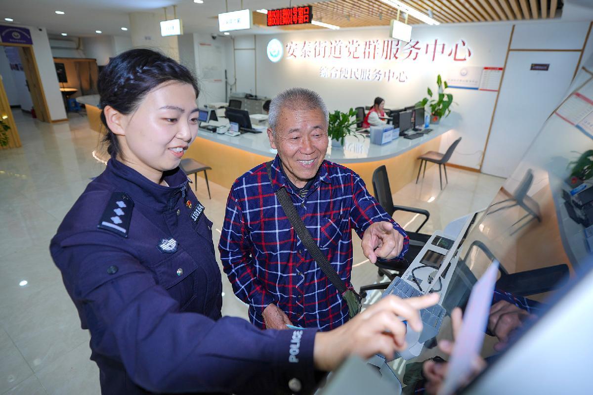 4月2日,在福建省福州市鼓樓區(qū)安泰街道黨群服務(wù)中心,福州市公安局鼓樓分局安泰派出所民警指導(dǎo)群眾使用便民服務(wù)終端。近日,安泰街道推動綜治、警務(wù)與政務(wù)服務(wù)融合,將戶籍、身份證等公安高頻事項與社保、民政等業(yè)務(wù)納入同一大廳,實現(xiàn)“一站式受理”。